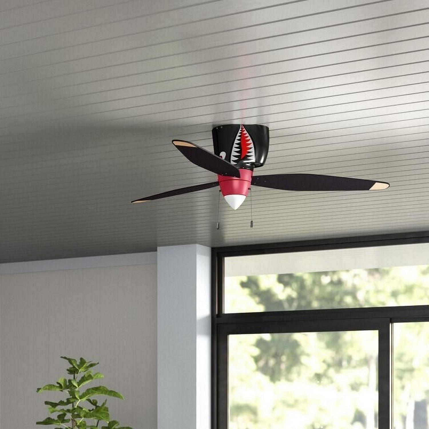 Craftmade Lighting-WB348TS3-Collection: WarPlanes, Material: Plywood, Finish Color: War Bird Black/Tigershark, Blade Span: 48″, Blade Color: War Plane, Number Of Blades: 3, Blade Pitch: 15°, Fan Motor Size: 153×8 mm, Fan Motor Type: AC, Hanging Method: Flush, Light Kit Type: Included, Lamping Type: LED, Cri: 83, Color Temperature: 2700 Kelvin, Control Type: Pull Chain, Wet Location: Dry Rated, Desc: Perfect for a boy’s room, playroom, or for any plane aficionado; the War Planes ceiling fan collection is a tribute to the heroic fighter pilots and planes of yesterday. At 42″-48″ in diameter, these classic reproductions come with small space flushmount installation, a standard 3-speed reversible motor and a Lifetime Limited Warranty. Choose from our four lofty designs and let your imagination soar. Standard, 3-Speed Reversible Motor Small Space Flushmount Installation 48″ Blades in WarPlane (Included) Integrated Light Kit (1-60W Candelabra Bulb Included) . Shade Included: TRUE / Warranty: Lifetime Limited / Amps: 0.5. ,-WarPlanes – 48 Inch Ceiling Fan With Light Kit