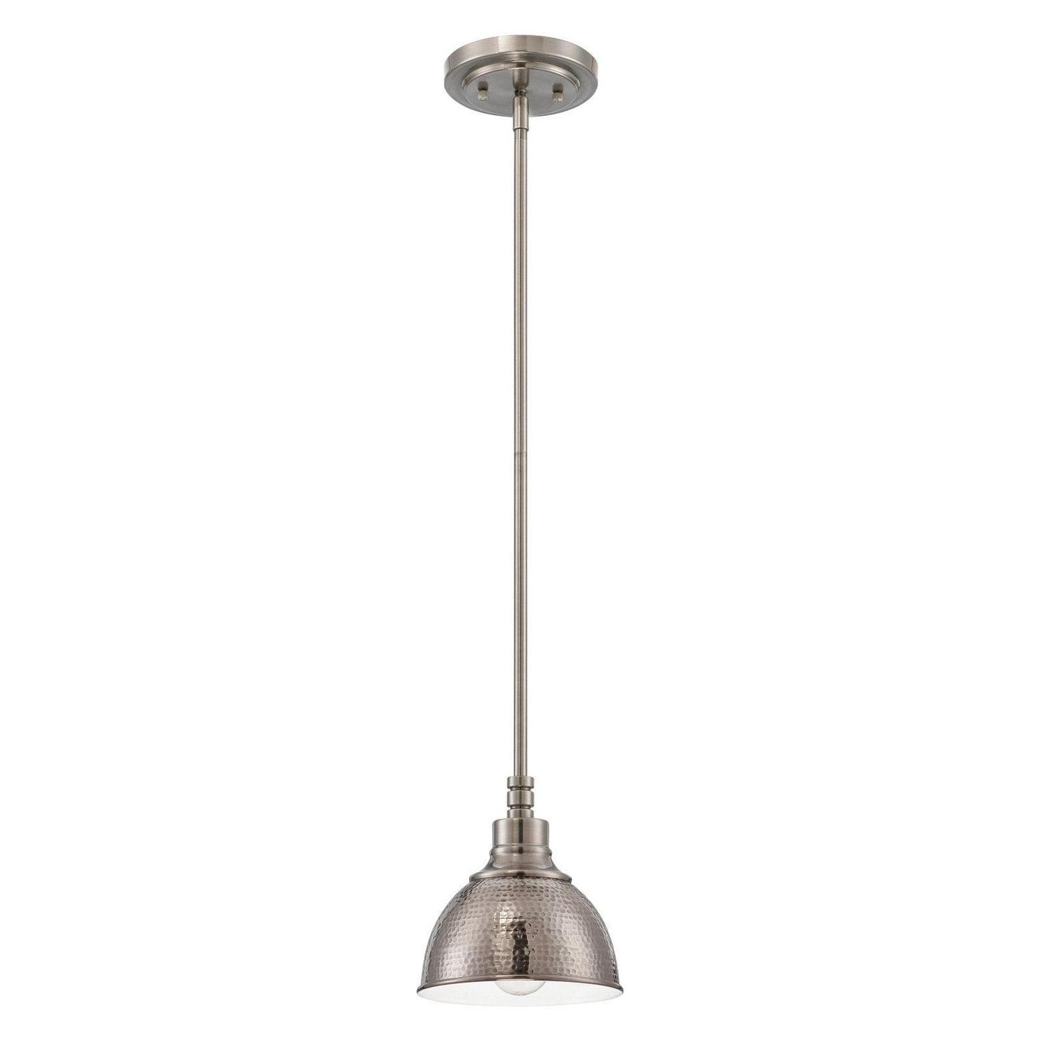The round, hammered metal shade of the Craftmade Timarron 35991 Pendant Light gives your lighting décor a contemporary touch. This pendant light requires one 100-watt incandescent bulb (not included).