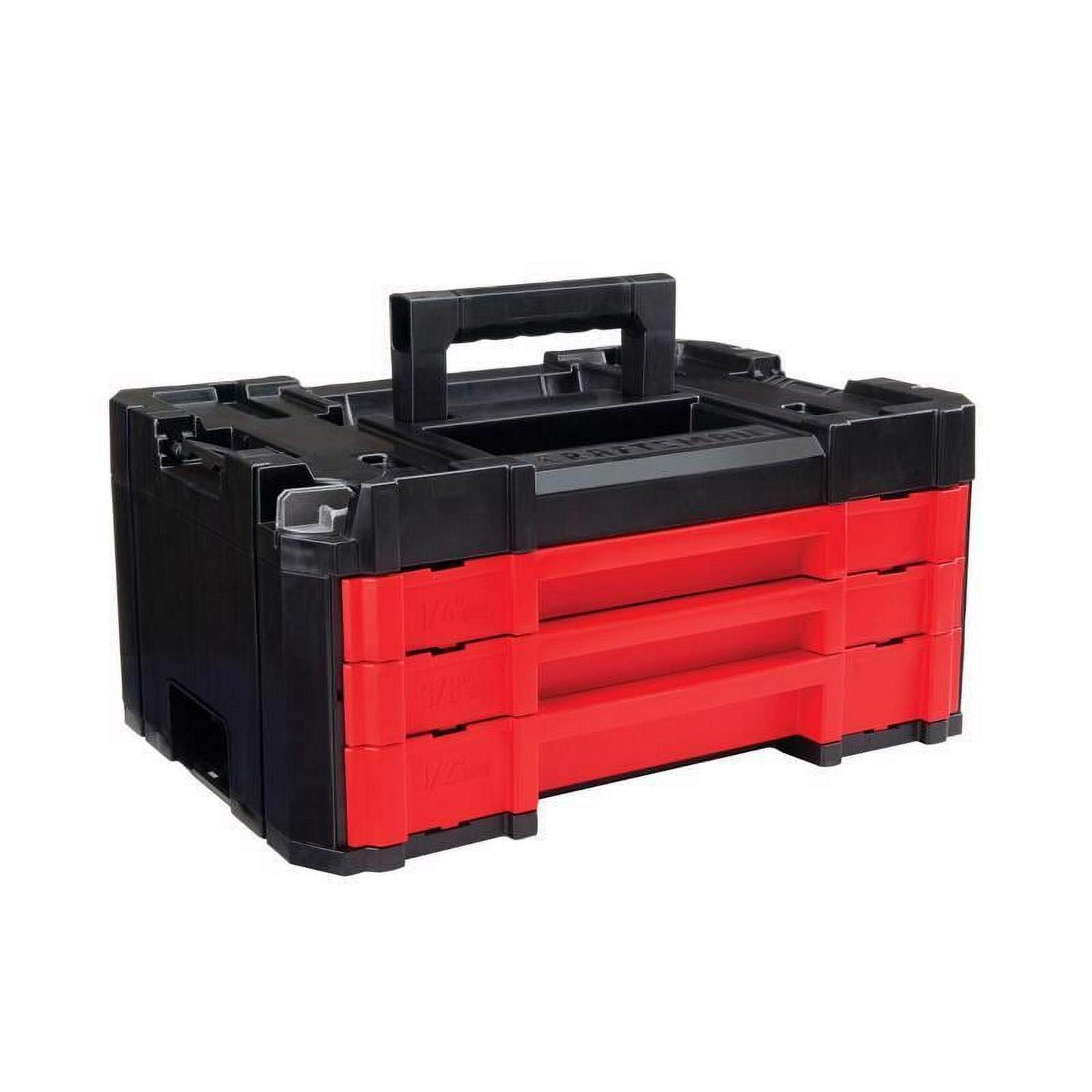 Whether you re an expert repairperson or a do-it-yourselfer, make sure your workshop or garage is kept neatly organized with the help of this VERSASTACK 262 pc. 3-Drawer Mechanic Tool Set, Standard and Metric. Save space by conveniently stacking and connecting the drawers with other compatible pieces to add stowing capacity. Securely lock the drawers in place when not using them with the integrated lock dial to prevent your attachments and tools from falling out. The built-in drawer stop system allows you to easily remove the drawers, keep them in place, or open with one hand to retrieve your sockets, ratchets, hex keys, wrenches, specialty bits, and other accessories. When working on home or automotive repairs, sit the tool set drawer on top of the tool box to keep them within immediate reach.