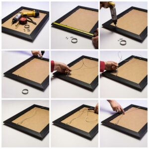 – Frame includes: clear acrylic facing, rigid cardboard backing and wire hanging hardware kit (some assembly required)