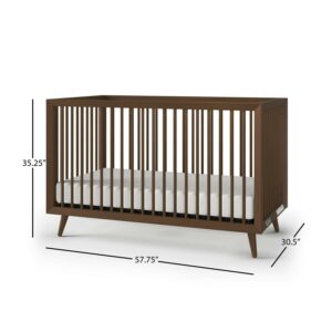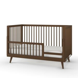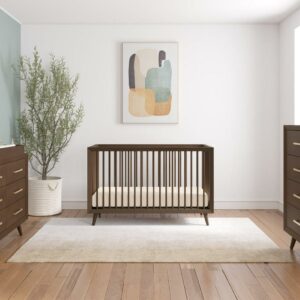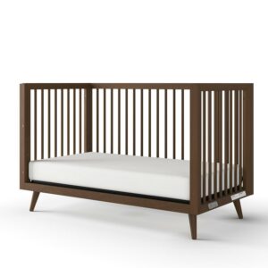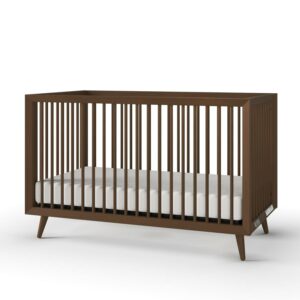 – Crafted of strong, sturdy pine wood and veneers to create a gorgeous mid century modern feel. The strong metal matress support adjusts to 3 heights to accommodate your growing infant