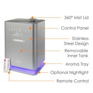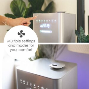 Crane USA 1.2 Gallon Warm and Cool Mist Top Fill Humidifier with Remote, 500 Sq. Ft Coverage, UV Ionizing Light, Metallic