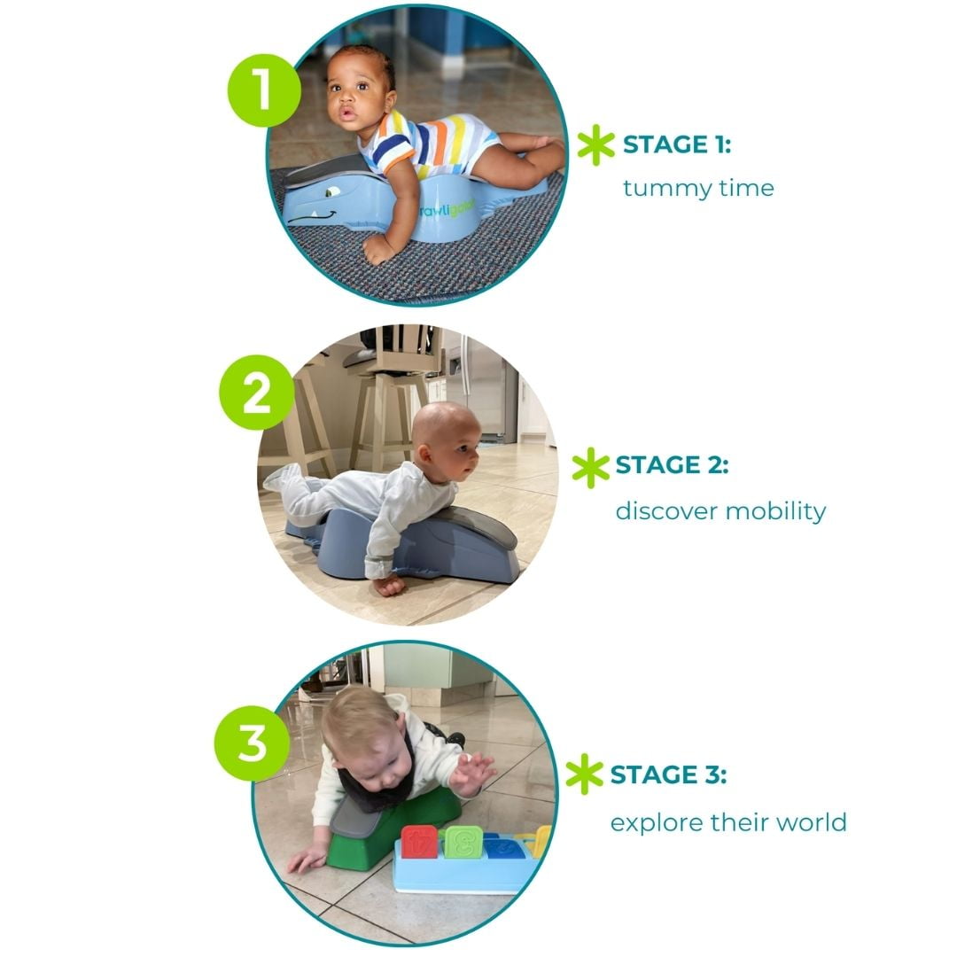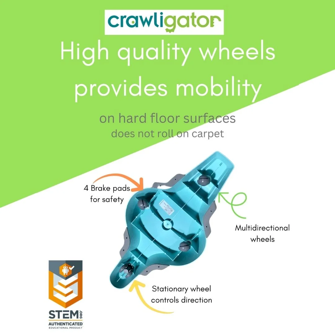 Crawligator tummy-time toy for infants provides mobility and crawling movement