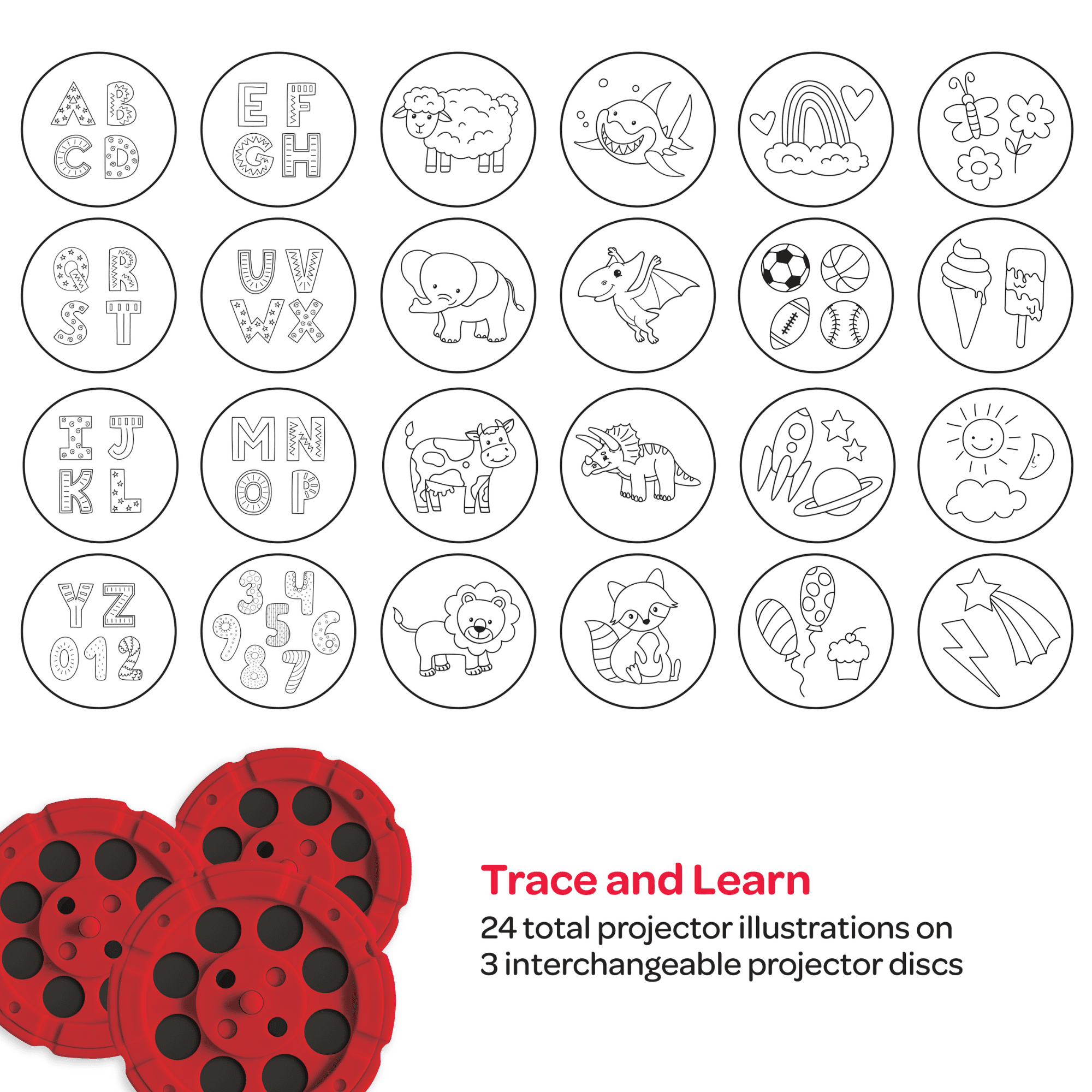 Let your imagination run wild with the Crayola Projector Easel! This fun-filled easel includes a adjustable image projector, double-sided chalk and dry erase board, adjustable height design, and a variety of fun accessories! These accessories include markers, chalk, magnetic letters and numbers, and an eraser. 3 projector disks are included, allowing the projector to display 24 fun images to trace! Whether your child is just starting their artistic journey, or is a drawing pro, this easel is sure to provide hours or artistic fun! Projector requires 3x AAA batteries (not included).