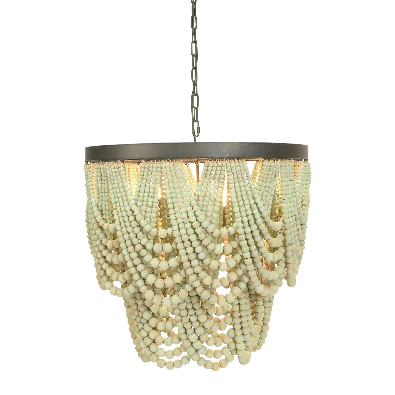 Creative Co-Op Metal Chandelier with Draped Wood Beads