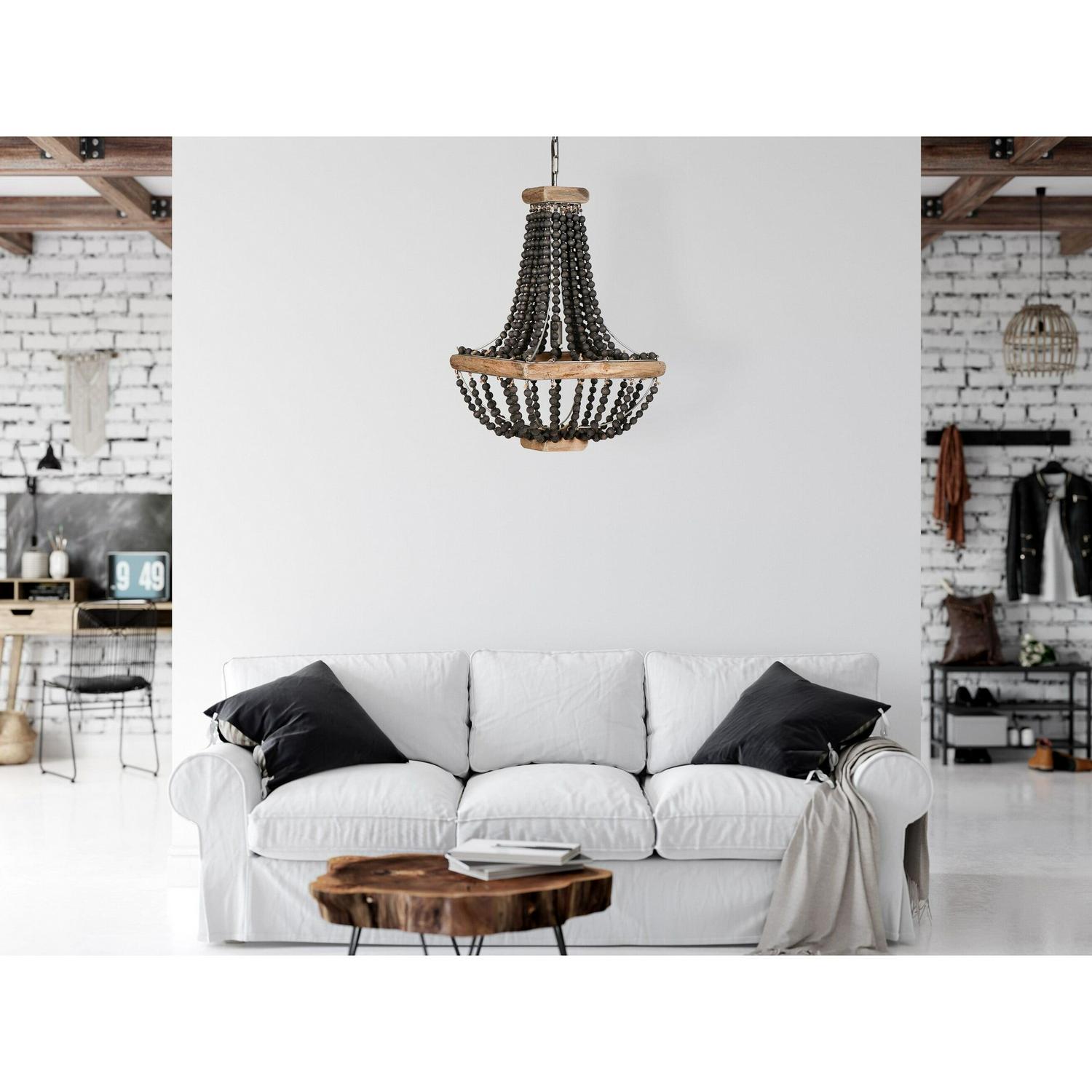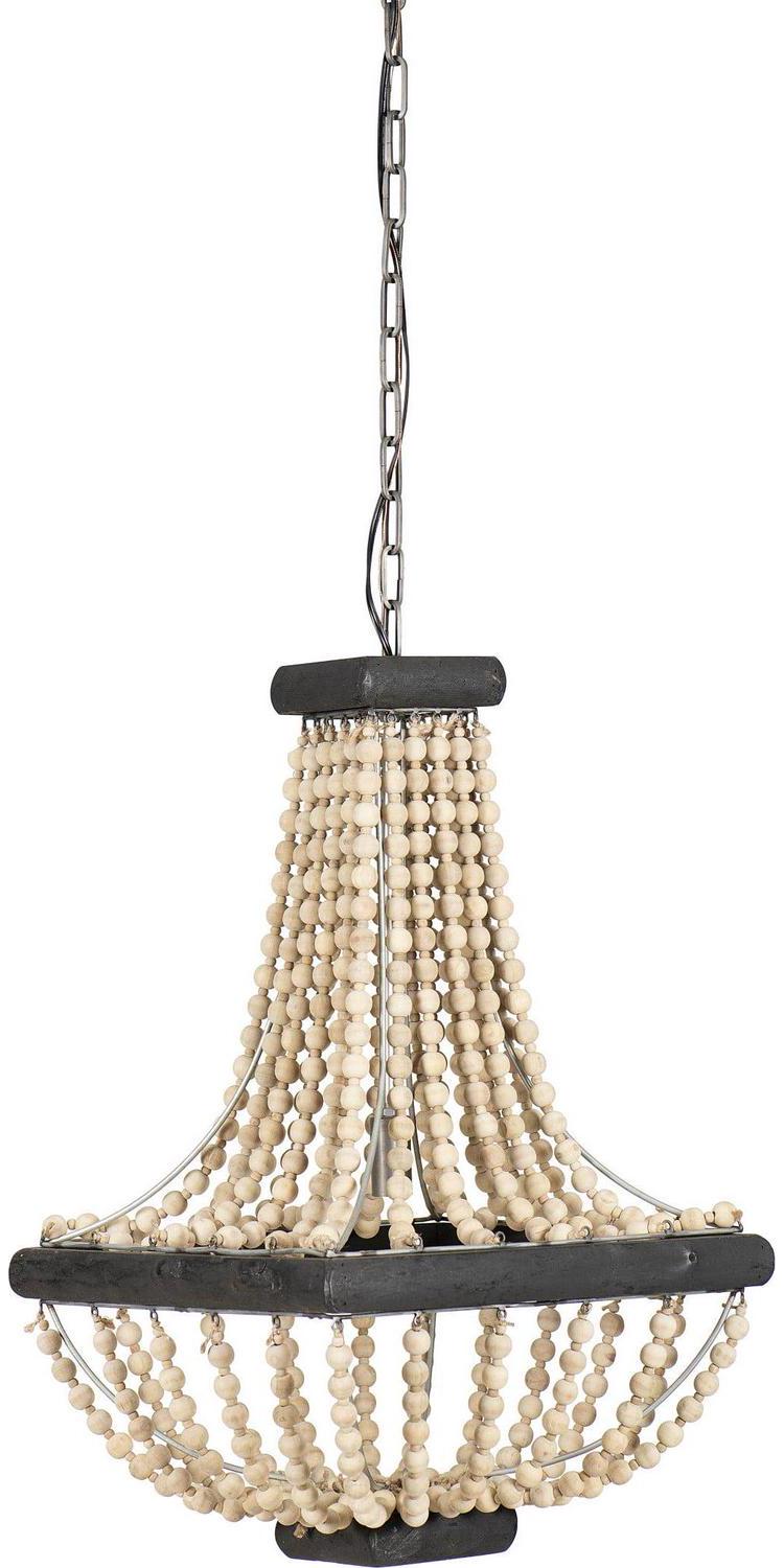 Draped with wooden beads in soft, tan hues, this pendant light brings warmth and elegance to any room. Its weathered details with triple black wood frames pair perfectly with vintaged farmhouse wall decor while its open design brings breezy style to any space. Add to a foyer, kitchen or bathroom decor for a decorative light that cannot be topped.