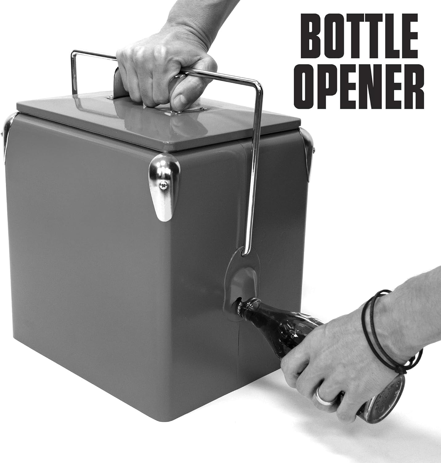 Need a reliable beverage cooler for every occasion? Our ice chest is what you need for picnics, camping, or tailgating. With this retro-inspired camping cooler, you can keep your drinks ice cold all day long in style. This cooler is your go-to beverage caddy, ensuring you always have cold beverages within reach. Constructed from scratch and rust-resistant steel, this vintage cooler is built to withstand the outdoors. It features a locking handle with lid that ensures secure and easy transport of your drinks.From BBQs to beach parties, this ice chest cooler has you covered. Revolutionize refreshments with the Creative Outdoor Legacy Ice Cooler with Bottle Opener! With its chrome-polished stainless steel exterior, this outdoor cooler exudes a nostalgic charm while providing modern functionality. It’s the ideal partner for road trips and long drives, providing easy access to refreshments along the way. It also protects food at your campsite, minimizing food odors and keeping it sealed and inaccessible to wildlife. The dual-wall insulated construction of our ice chest cooler keeps beverages frigid-cold at all times. This retro cooler helps maintain the freshness of perishable foods like meat, dairy, and vegetables. It prevents fast spoilage and extends the shelf life of different foods. No need to bring extra bottle opening tools. Our drink cooler comes with a heavy-duty stainless steel bottle opener. This water cooler is capable of holding up to ten bottles or twelve cans as well as lots of ice. It’s truly a must-have for any outdoor enthusiast. Enjoy perfectly chilled beverages and fresh food wherever you go. Add the Creative Outdoor Legacy Ice Cooler with Bottle Opener to your cart today!