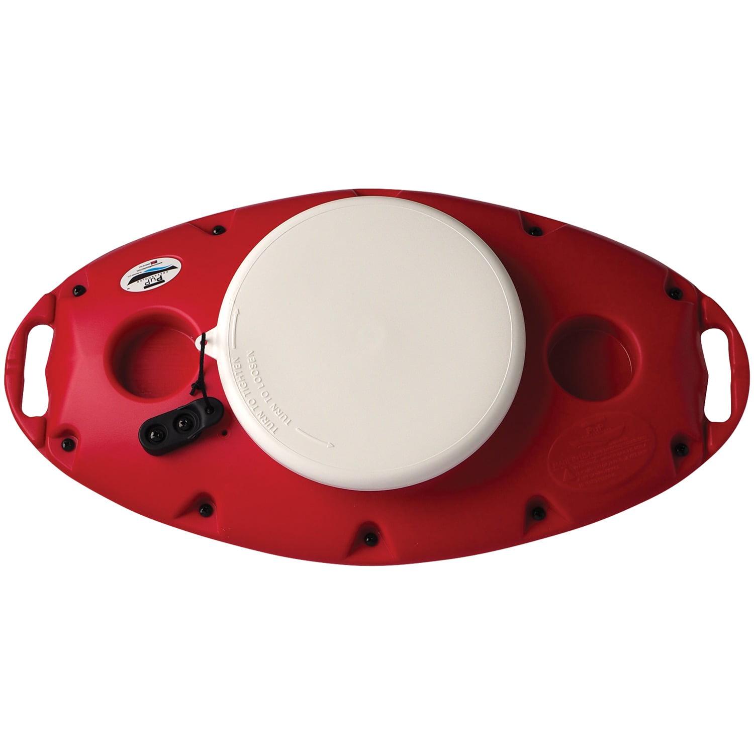The CreekKooler 15 Qt. PuP Floating Cooler is an insulated cooler that floats and can be towed. PuP has an internal capacity that actually exceeds 15 quarts. This red cooler can hold fifteen 12 oz. cans along with 10 lbs. of ice. PuP has a quick-connect and gasket-sealed lid. PuP is insulated with an average insulation thickness over .5 in. and has integrated handles with central tow point and a built-in flag holder along with removable lid tether anchor. Tow it from the back of your kayak, canoe, raft or standing paddle board!