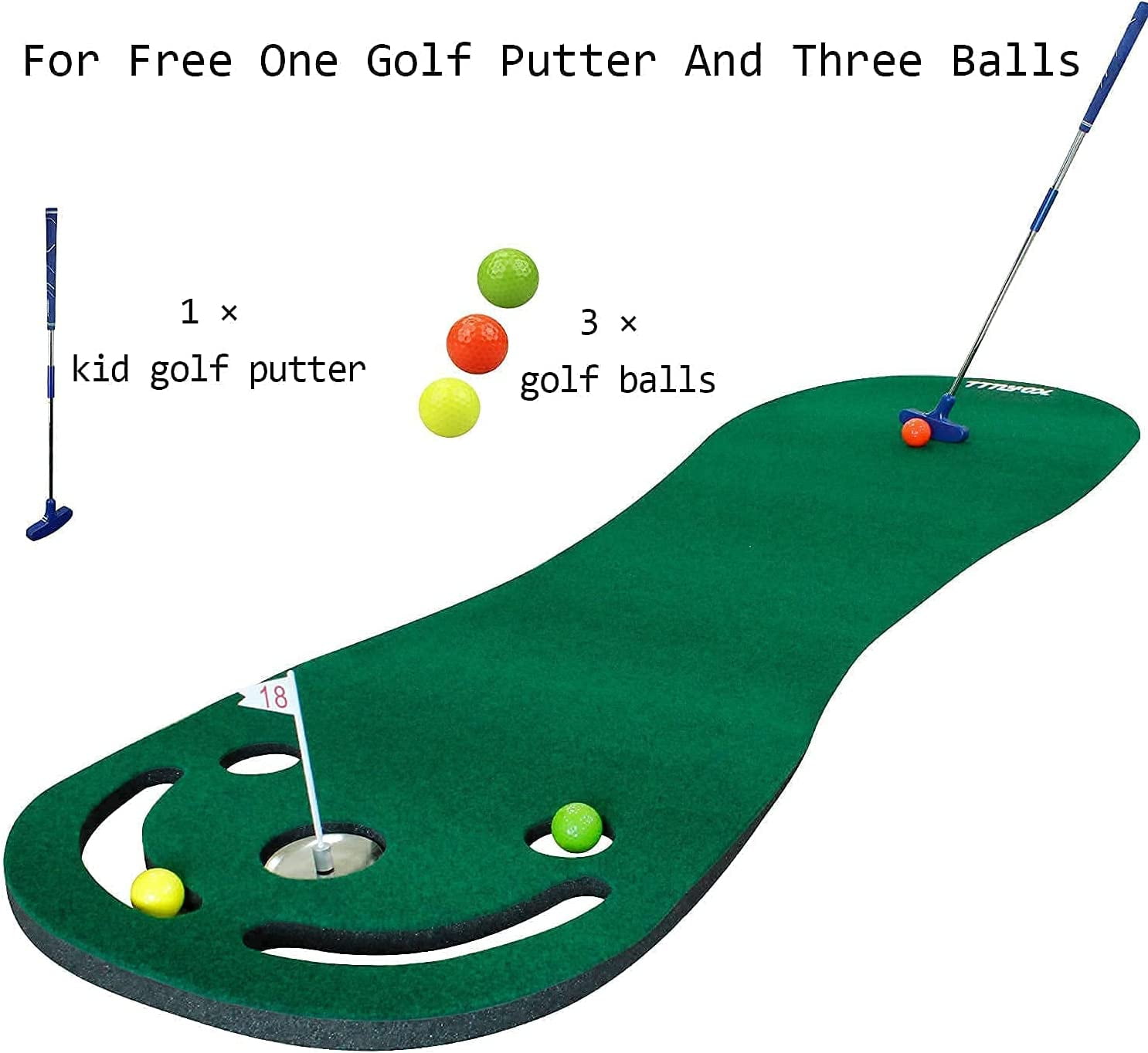 Improve Putting Skill — No matters your skill or age, this golf putting mat helps you hone your game skills on the green while training different angles and distances to the hole. Ideal Gift for golfers or children/ kids. This putting green kids be used by left and right-handed. Portable & Easy Storage — Our 78 inches kids golf set is lightweight, easy to carry, roll up and store. Sets up freely indoor/ outdoor patio backyard home living room garage with the right amount of space. Putting, training, and practicing drills at anytime. Home, Party and travel Play Best Choice. Parent-child Time and Beginners —Using a putting green outdoor rug/ indoor putting green kids use can help you better putt skills, help you better target your putting with consistency. Have more parent-child time Improve your child’s concentration with practice putting green kids. Home Practicing Comfortably —This indoor putting green offering an instant lay-flat top side with non-slip rubber bottom. A real-life green, indoor golf putting aid that you can use within your very own home.