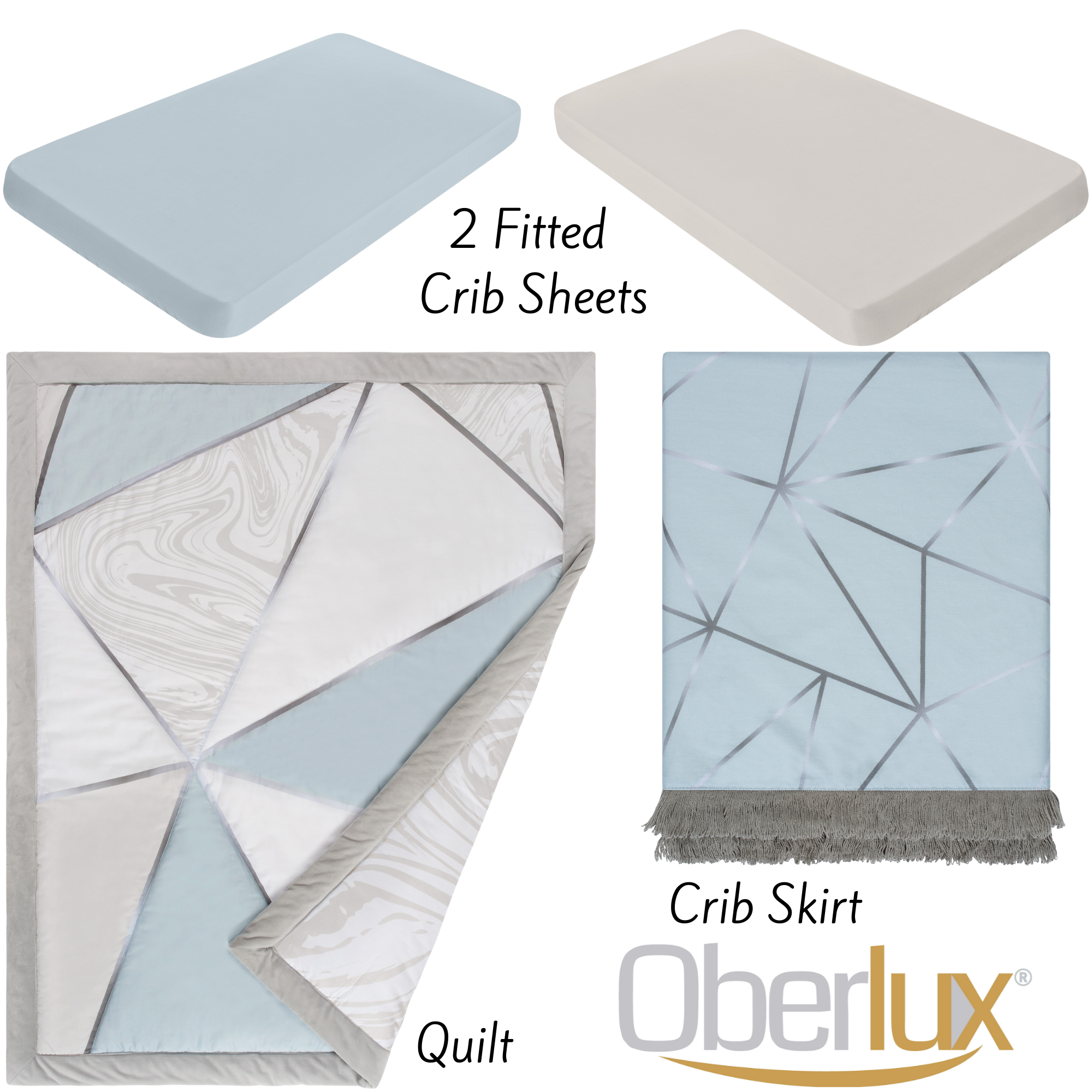 Crib Bedding Set for Boys | 4-Piece Baby Crib Set | Geometric Patterns, Shiny Silver, Baby Blue & Marble Prints | Precious Collection by Oberlux