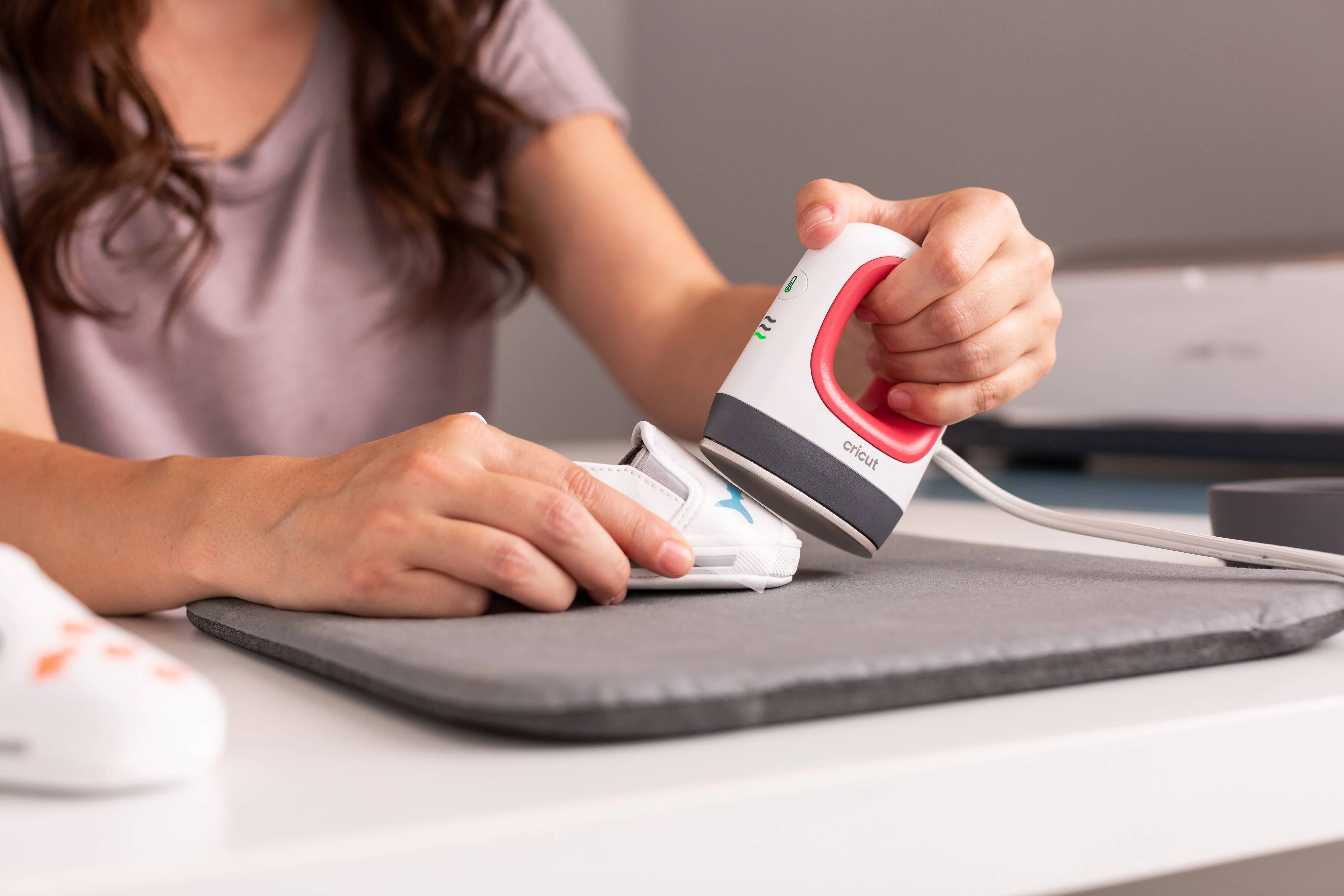 Raspberry Red Compact size ideal for unusually small or unique heat transfer projects Customize unusual projects like shoes and stuffed animals Ceramic-coated heat plate for dry, even, edge-to-edge heat 3 heat settings for every iron-on (HTV) and Cricut Infusible Ink™ project Insulated Safety Base and auto-off feature Precision tip for added control and accuracy Lightweight, portable, easy to store Effortlessly glides over uneven surfaces