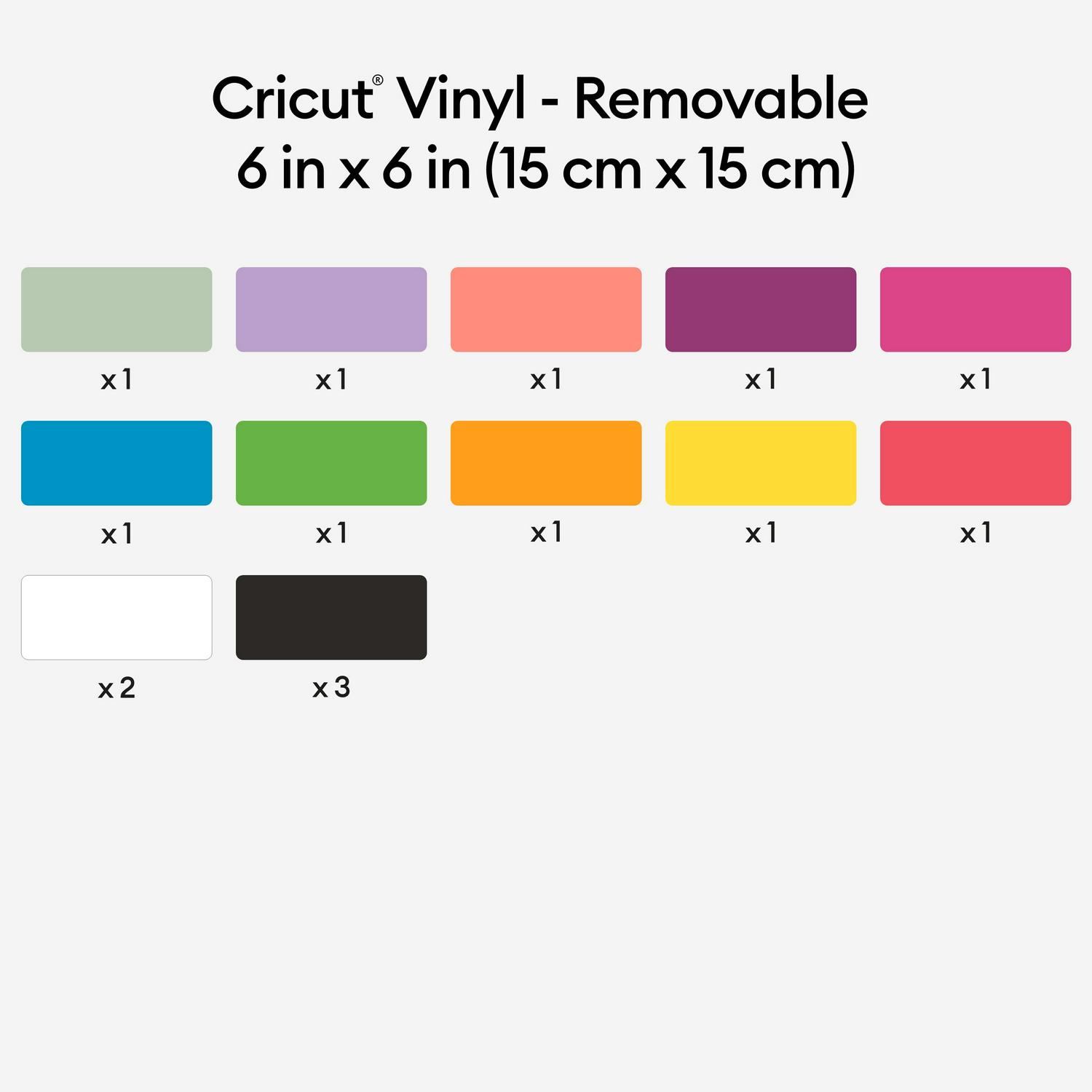 - 15 Sheets of Cricut Removable Vinyl, 6 in x 6 in (15 cm x 15 cm) – 12 colors