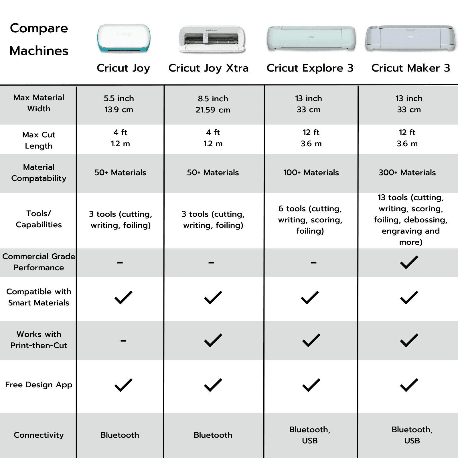 The fits-in-any-space, looks-good-anywhere smart cutting machine. Cricut Joy Xtra cuts, writes, draws, and foils to make popular projects. Make a wide range of personalized projects in minutes like stickers, cards, labels, vinyl decals, tags & more. Use with your inkjet printer to create full-color, custom-shaped stickers, iron-on transfers, labels, party decor & more. Set yourself up for success every time with Cricut Joy Xtra materials. No design or crafting experience required – use the easy-to-learn Cricut companion app to find something ready to make or design from scratch. BUNDLE INCLUDES: 1- Cricut Joy Xtra Machine 1- Joy Xtra Smart Vinyl Elegance Sampler 9.5 IN X12 IN (3) 1- Joy Xtra Smart Vinyl Summer Sampler 9.5INX12IN(3) 1- Transfer Tape (9.5 IN X 36 IN) 1- Joy Starter Tool Set 1- Joy Digital eBook Guide (Print copy unavailable) 1- Project Ideas for Vinyl eBook Guide and Digital Designs (Print copy unavailable)