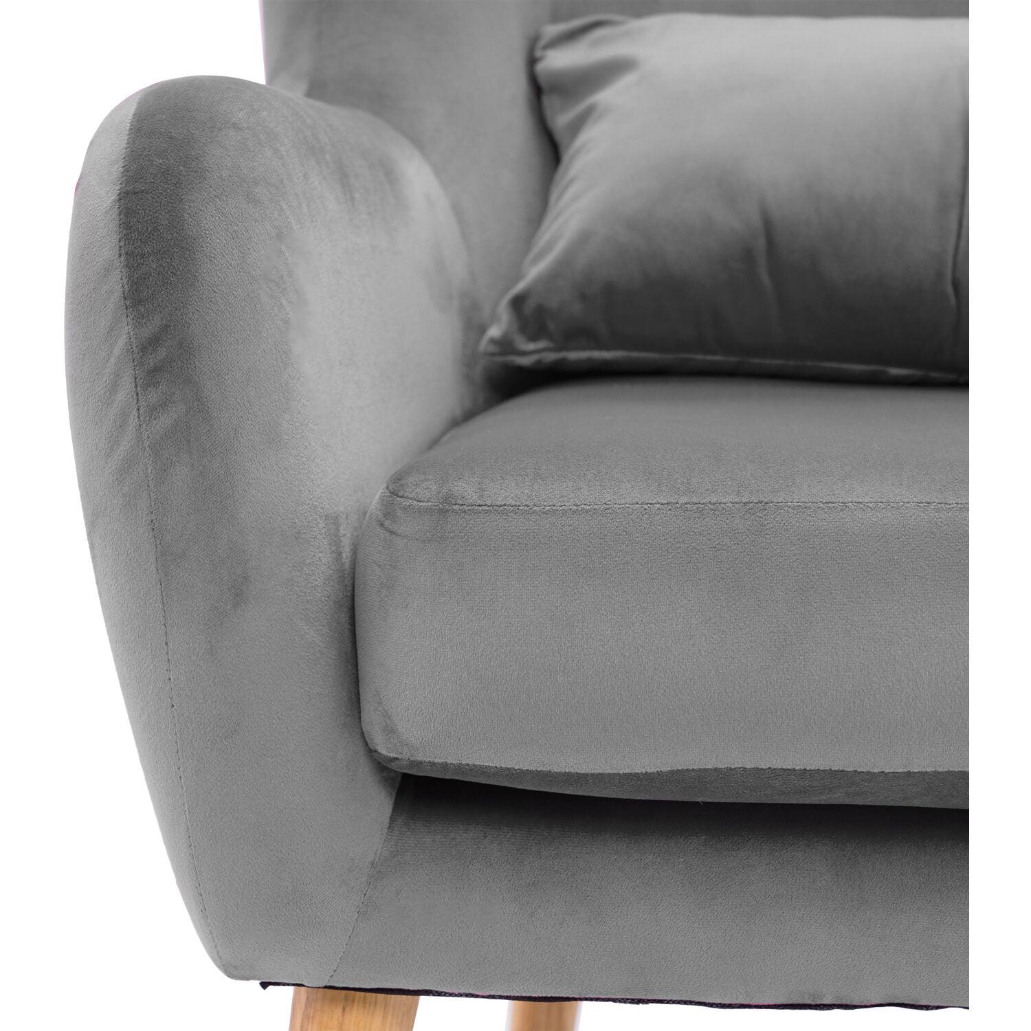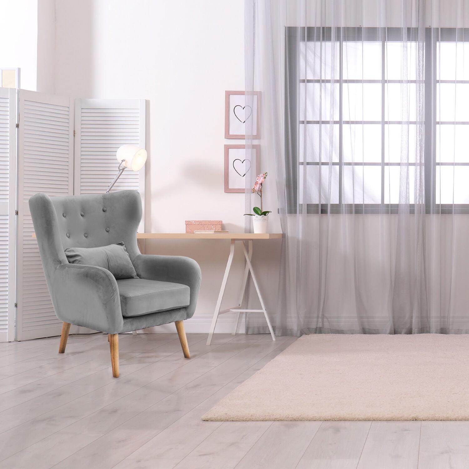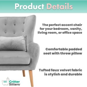 Critter Sitters Teen Chair | Wingback Accent Chair with Lumbar Pillow | Faux Velvet with Wooden Legs | Gray