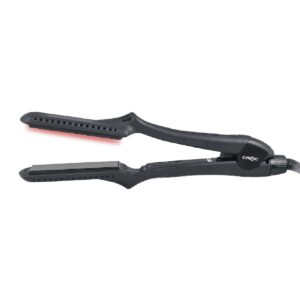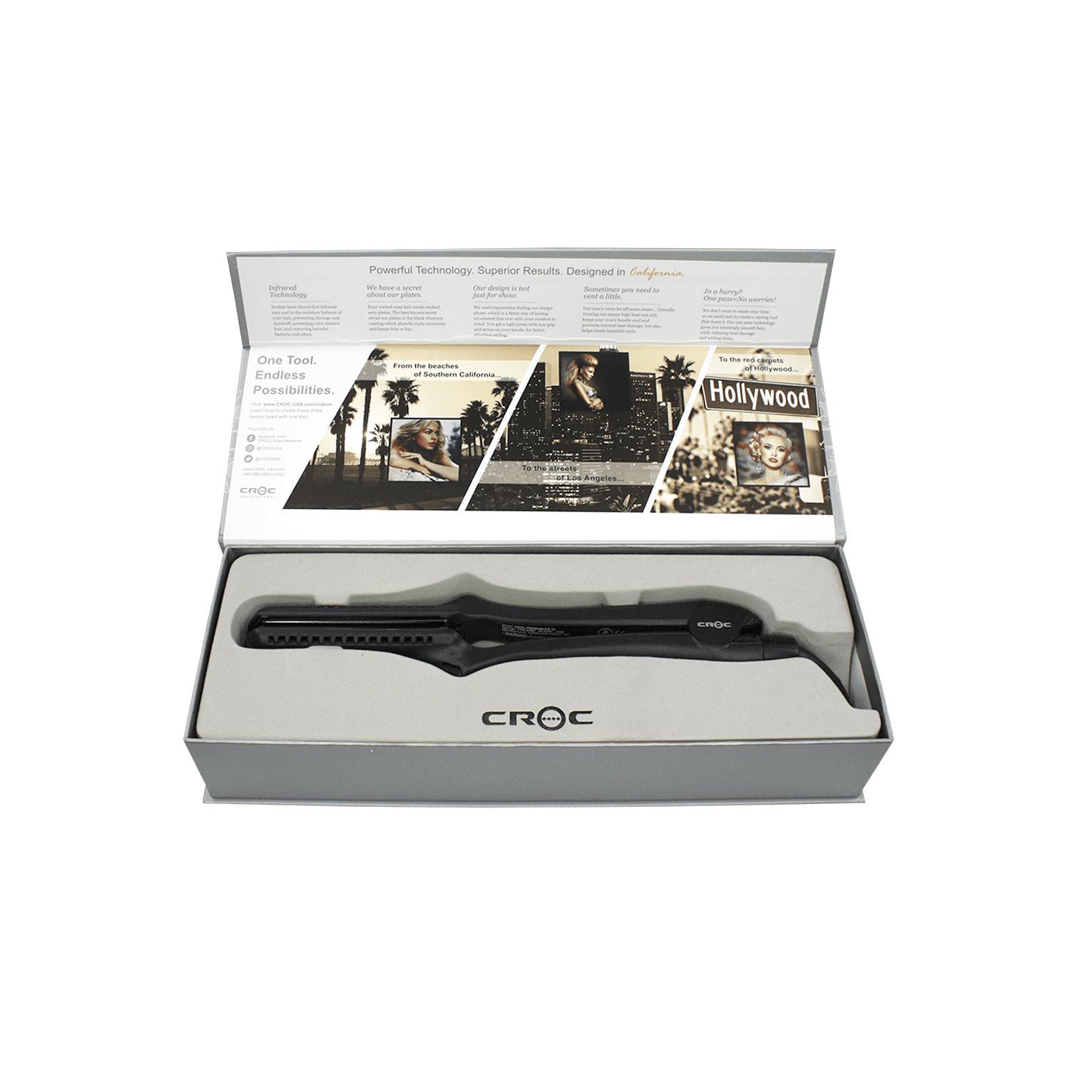 Straighten your hair with ease and comfort with the ultimate hair straightening flat iron! Featuring infrared technology and a curved barrel, this Titanium Hair Straightening Flat Iron can penetrate the cortex of your hair to protect its integrity while creating professional results. Plus, its deluxe thumb grip and color-changing cool tip make styling even more comfortable and safe no kinks! This hair straightener flat iron is perfect for all hair types, including color-treated and coarse hair. If you’re looking for the highest-performance premium flat irons for hair straightening, look no further than CROC Hair Professionals. Our advanced technology of flat iron for hair provides a variety of heat options as well as safety features, so your hair always looks its best.