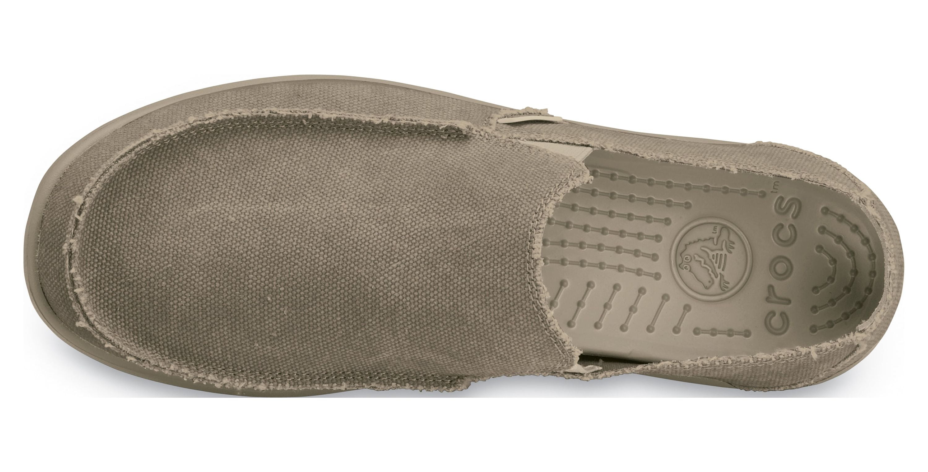Slip-on style loafer for easy on-and-off Canvas upper offers lightweight comfort Elastic goring along the sides for a secure fit Croslite material midsole for a custom, form-to-foot fit Tiny nubs along the footbed offer a massage-like feel Dual Crocs Comfort: Blissfully supportive. Soft. All-day comfort Material: 100% Textile (cotton)