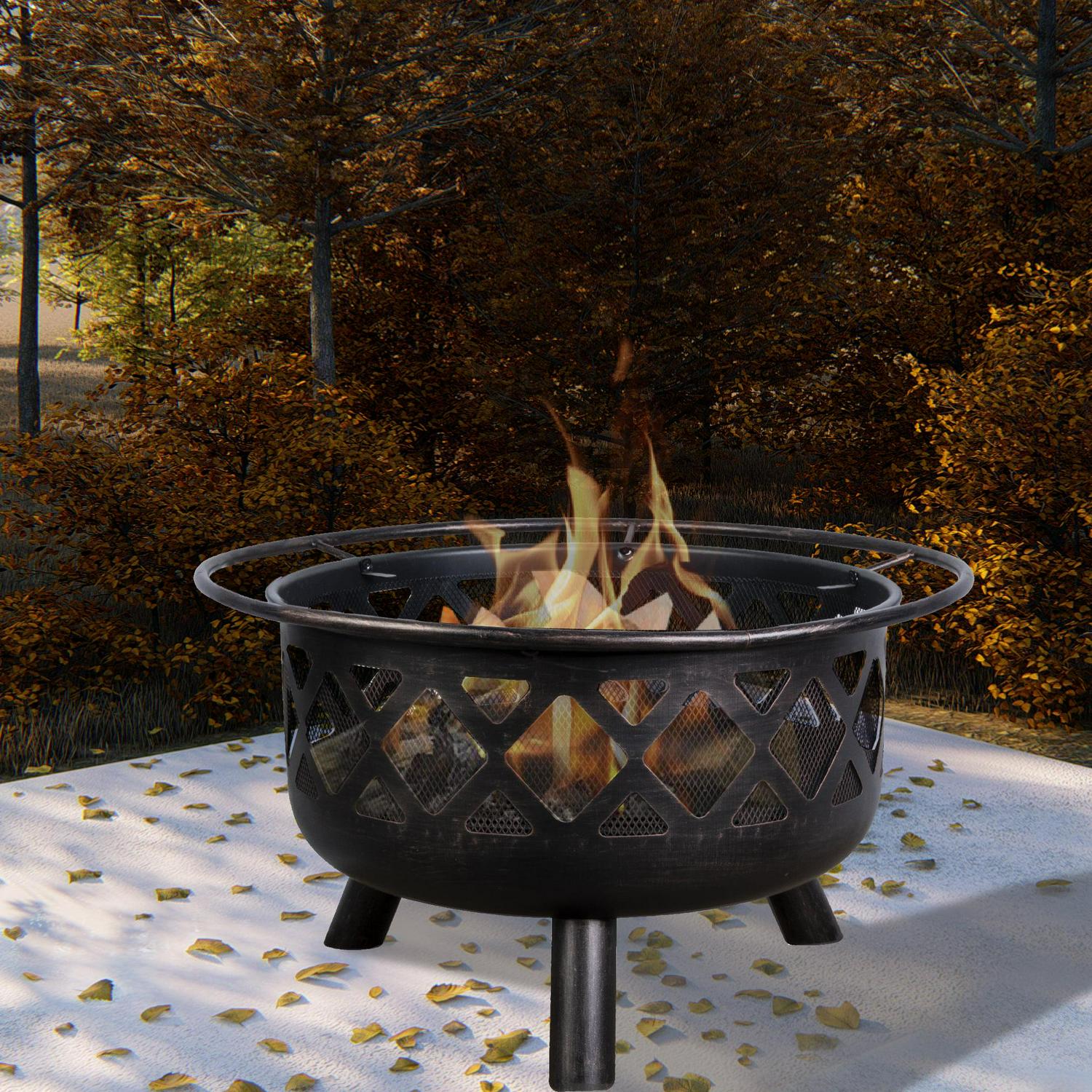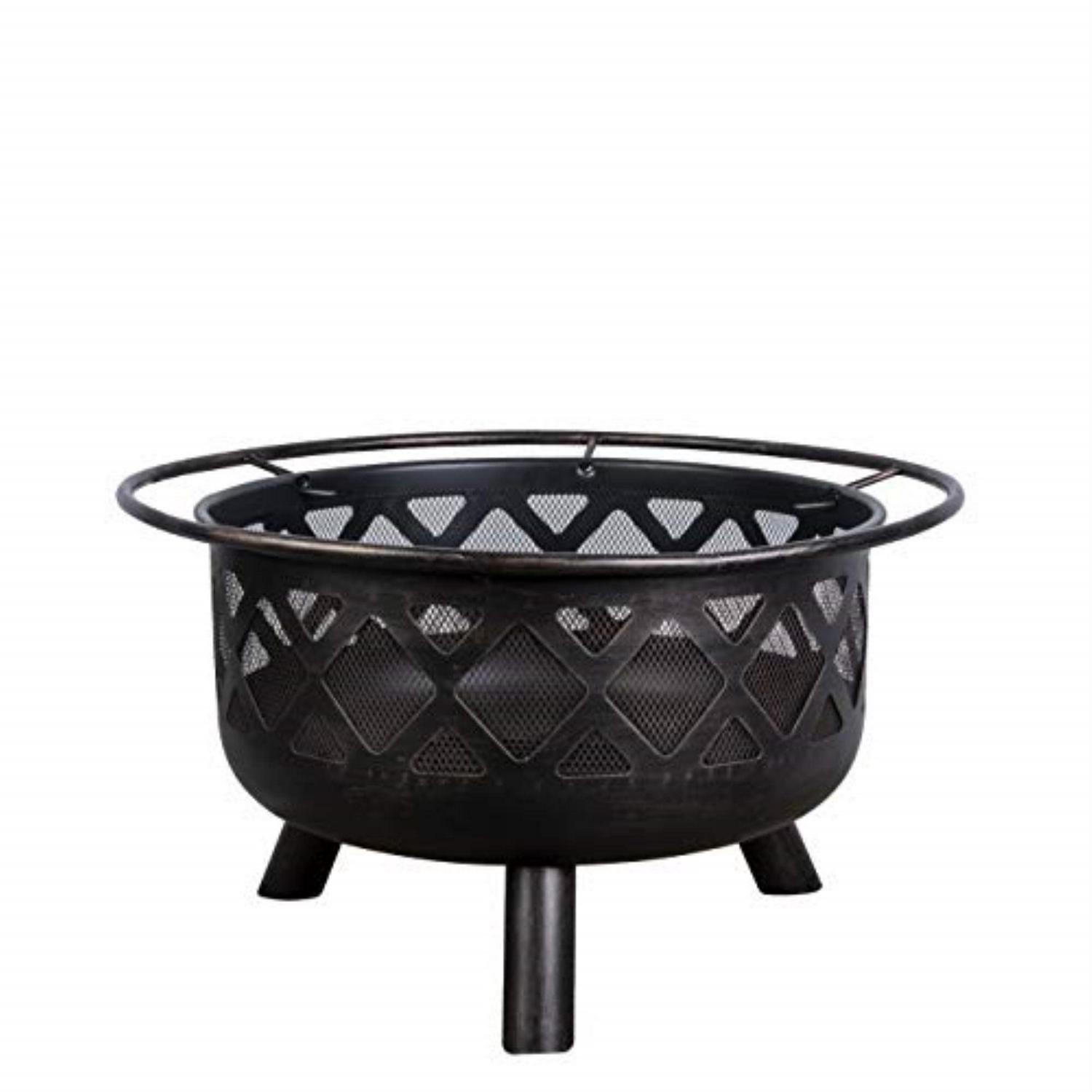 – The rustic lattice pattern is lined with a steel mesh, and is completed with the steel screen cover, to hold jumping embers inside