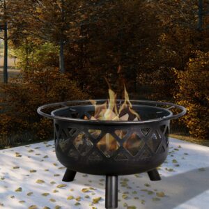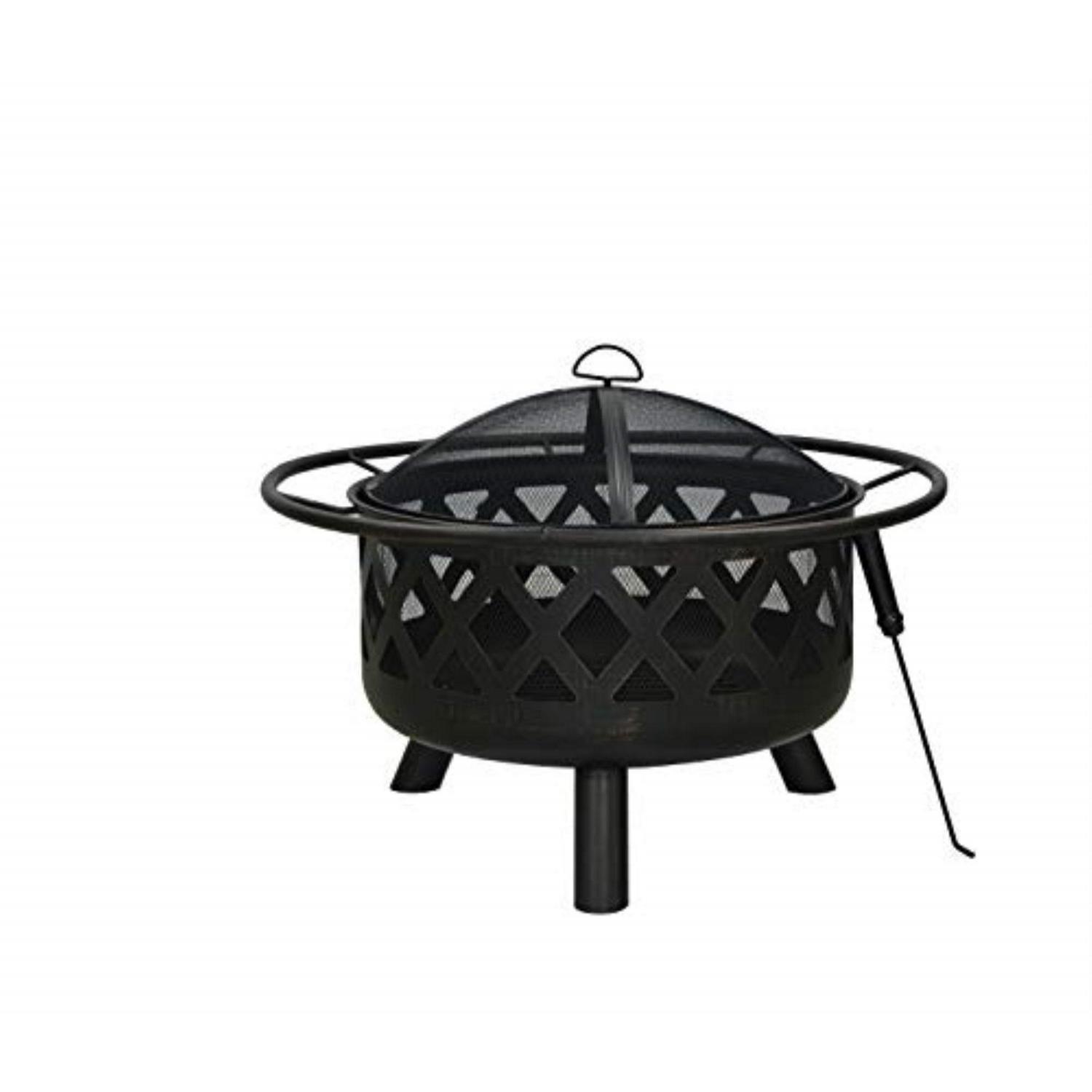 – At 32 Diameter, 17.7 H, (22.8 with its lid), this classic fire pit set also includes steel mesh lid, charcoal grate and a barrel-handled 13.3 poker
