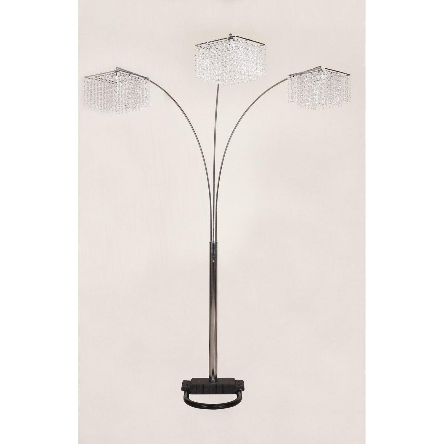 Crown Mark Chrome and Crystal Chandelier Table Lamp Make your living space shine with the Crown Mark 6217F-SV Floor Lamp. A single base holds three rectangular chandelier style lights that arc out. Each chandelier holds a 40-watt bulb (not included) and is controlled by a 3-way rotary switch. With over 35 years of experience as a top resource for furniture, Crown Mark offers products that are defined by their dependable quality and reasonable prices. They stay up to date on current trends to produce furniture that’s as chic as it is functional. With an extensive selection of items to choose from, it’s easy to find the ideal piece for your home.