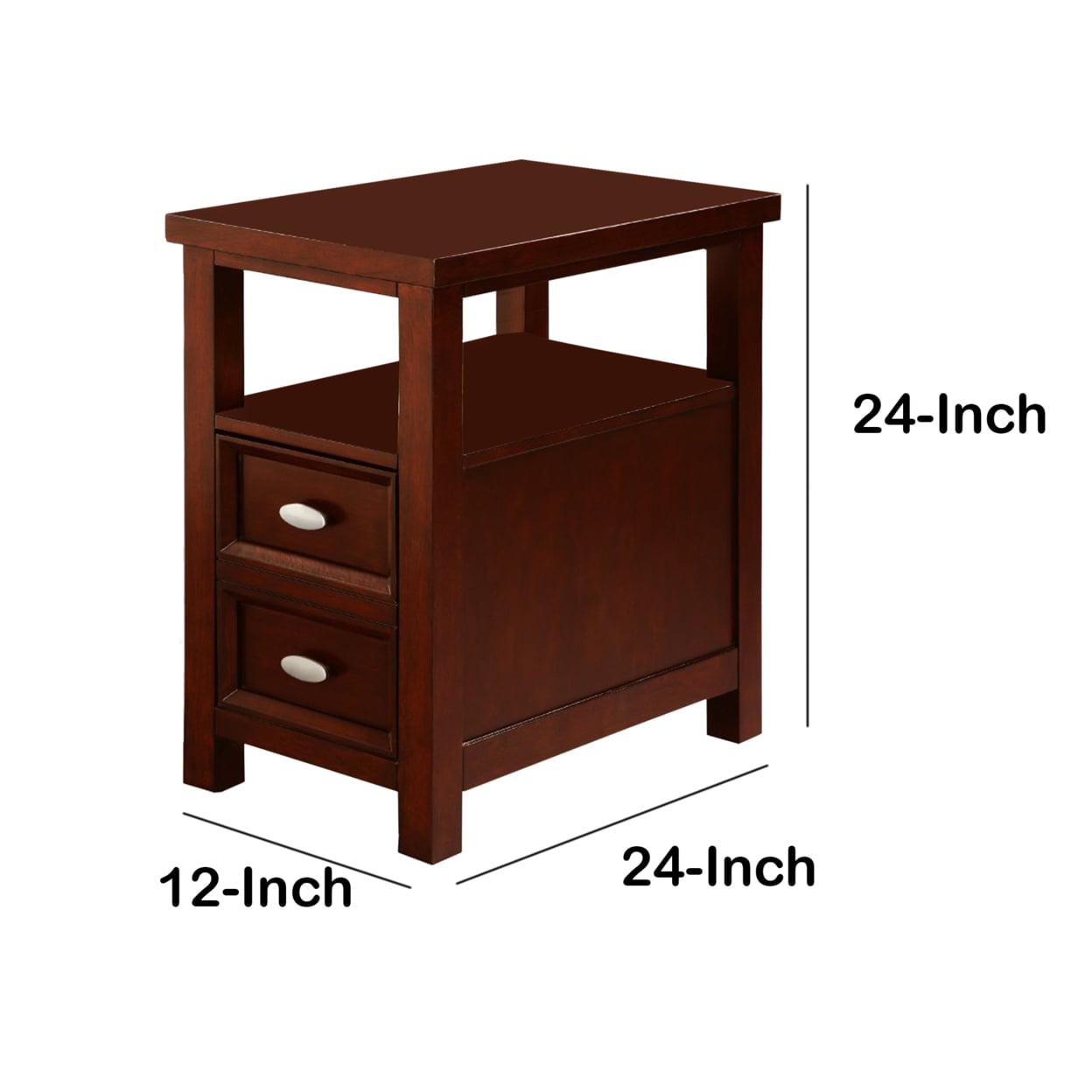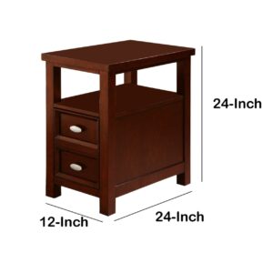 Crown Mark Dempsey Chairside Table, rectangular brown MDF and wood veneer