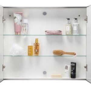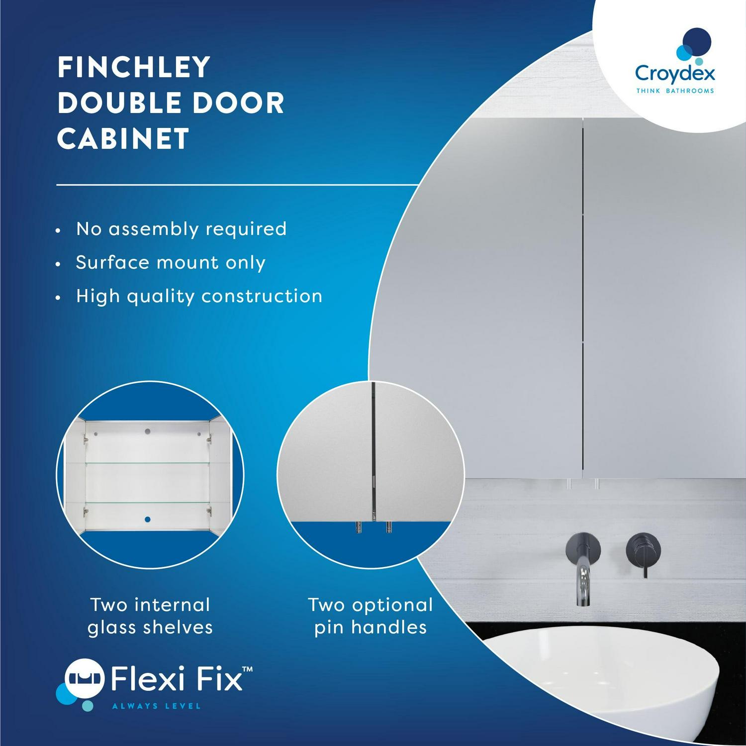 This Croydex Finchley medicine cabinet is the perfect storage solution. The double door medicine cabinet is made of durable stainless steel construction and feature two mirror doors with pin handles to open and close cabinet doors without leaving fingerprint marks on the mirrors. Bathroom cabinets are coming with self close hinges to prevent doors from slamming. Two internal glass shelves offer three levels of storage to maximize space. Thanks to the patented Flexi Fix easy installation bracket, it couldn t be simpler to install with included instructions. The cabinet is supplied fully assembled with all necessary hardware. Low maintenance white gloss interior and side panels are easy to clean and further brighten the space. Available in the three different sizes.