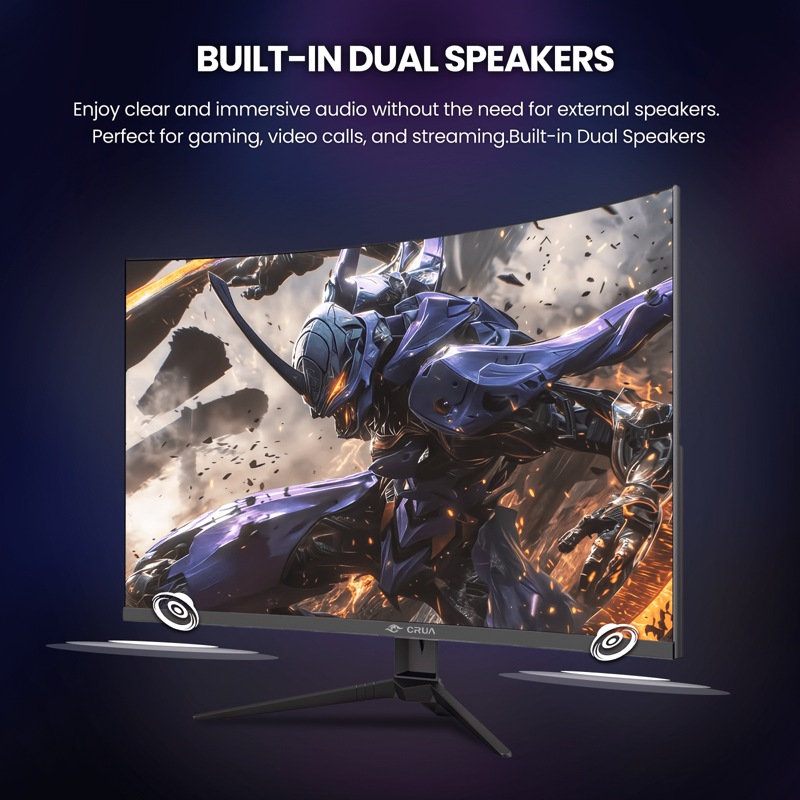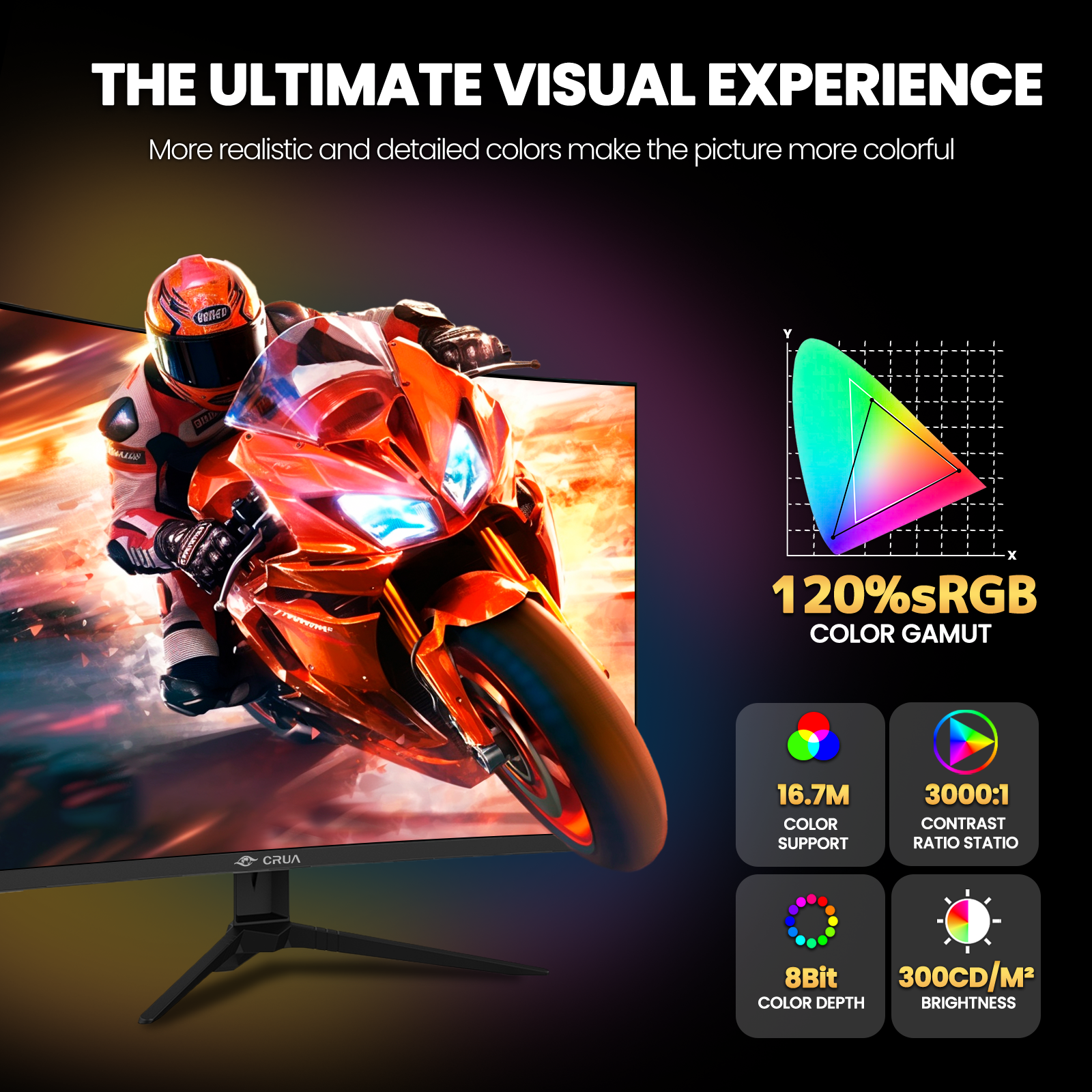 👑CRUA 27″ 2K Curved Gaming Monitor – Precision Wins Game VA panel with a resolution of 2560×1440p, offering a high level of detail and color fidelity.Its 1800R curvature provides a comfortable viewing angle, while its 100% sRGB coverage ensures that colors are accurately represented. It offers a 144Hz refresh rate and GTG 1ms response time for smooth visuals, along with a high 4000:1 contrast ratio. Connect effortlessly with HDMI and Display ports, and adjust the screen tilt for optimal comfort. Ideal for both work and play, this monitor delivers exceptional performance.