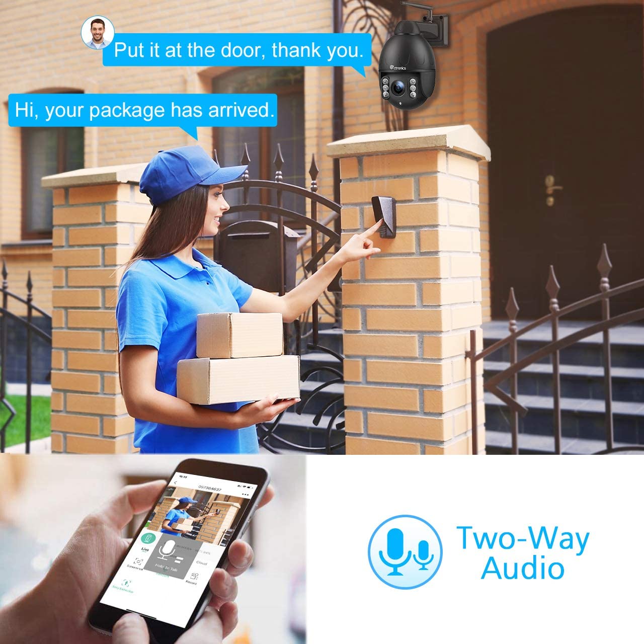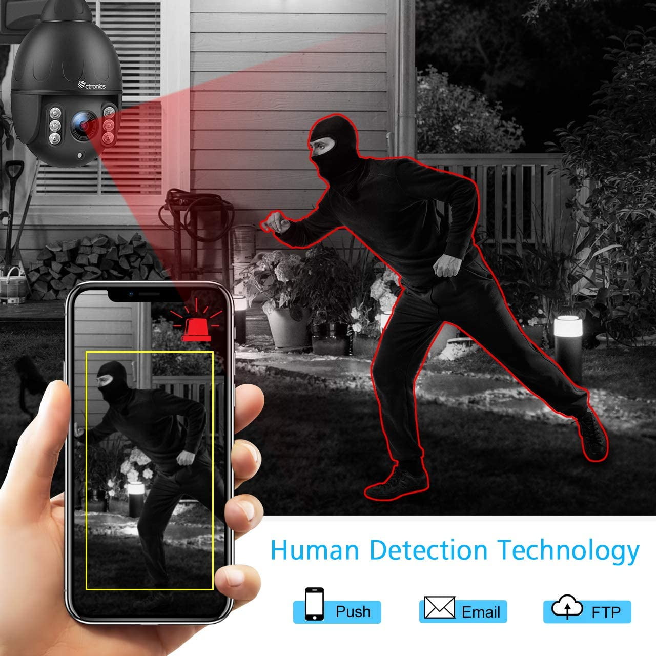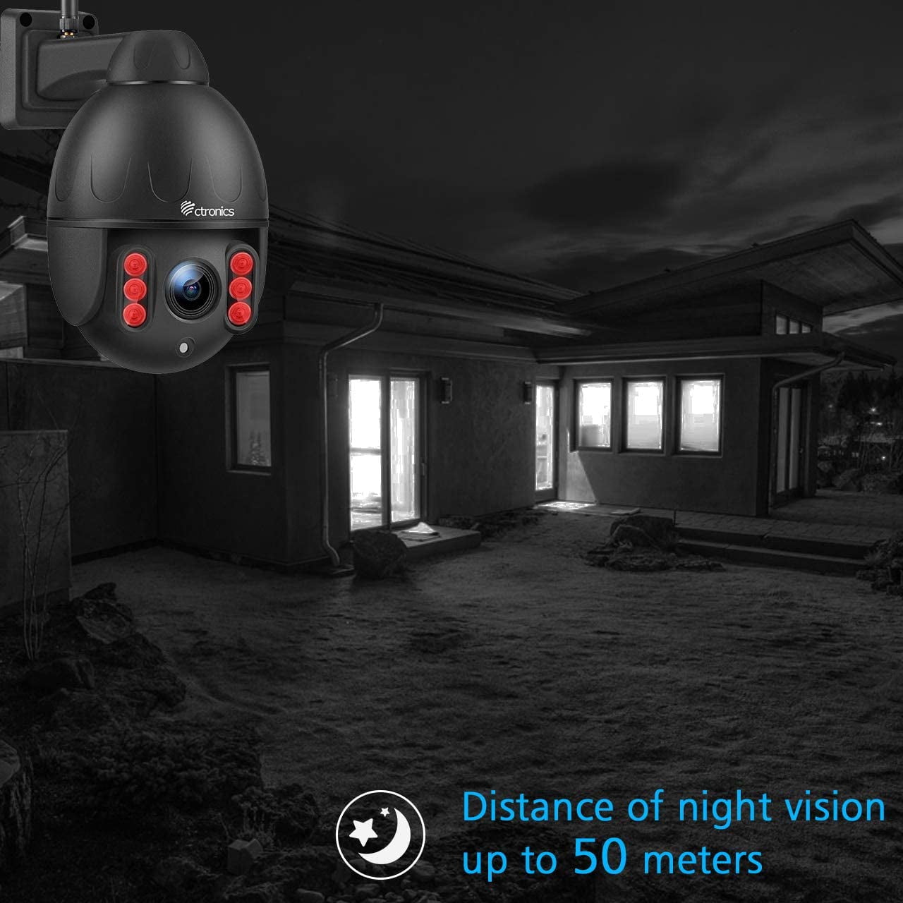 Features: High-definition cameras with night vision up to 100ft Wireless NVR with 1TB hard drive for ample storage Remote viewing via smartphone, tablet, or PC Motion detection and email alerts for enhanced security Specifications: Indoor/Outdoor Usage: Outdoor Brand: Ctronics Status: New Connectivity Technology: Wireless Connectivity Protocol: 2.4G WiFi IR distance: 50 meters Power source: Corded Electric Selling points: 5MP,4X Optical Zoom,Auto Tracking,PTZ,2 Way Audio,Automatic tracking,Human Detection 50M IR Night Vision, Motion Detection, IP66 Waterproof, IP Surveillance Camera Notice: 1. SD card is not included. 2. With color night vision and infrared night vision, you can choose independently. 3. The camera automatically deletes old videos to make room for new ones. 4. 2-Way Audio&Support viewing on multiple mobile phones at the same time.