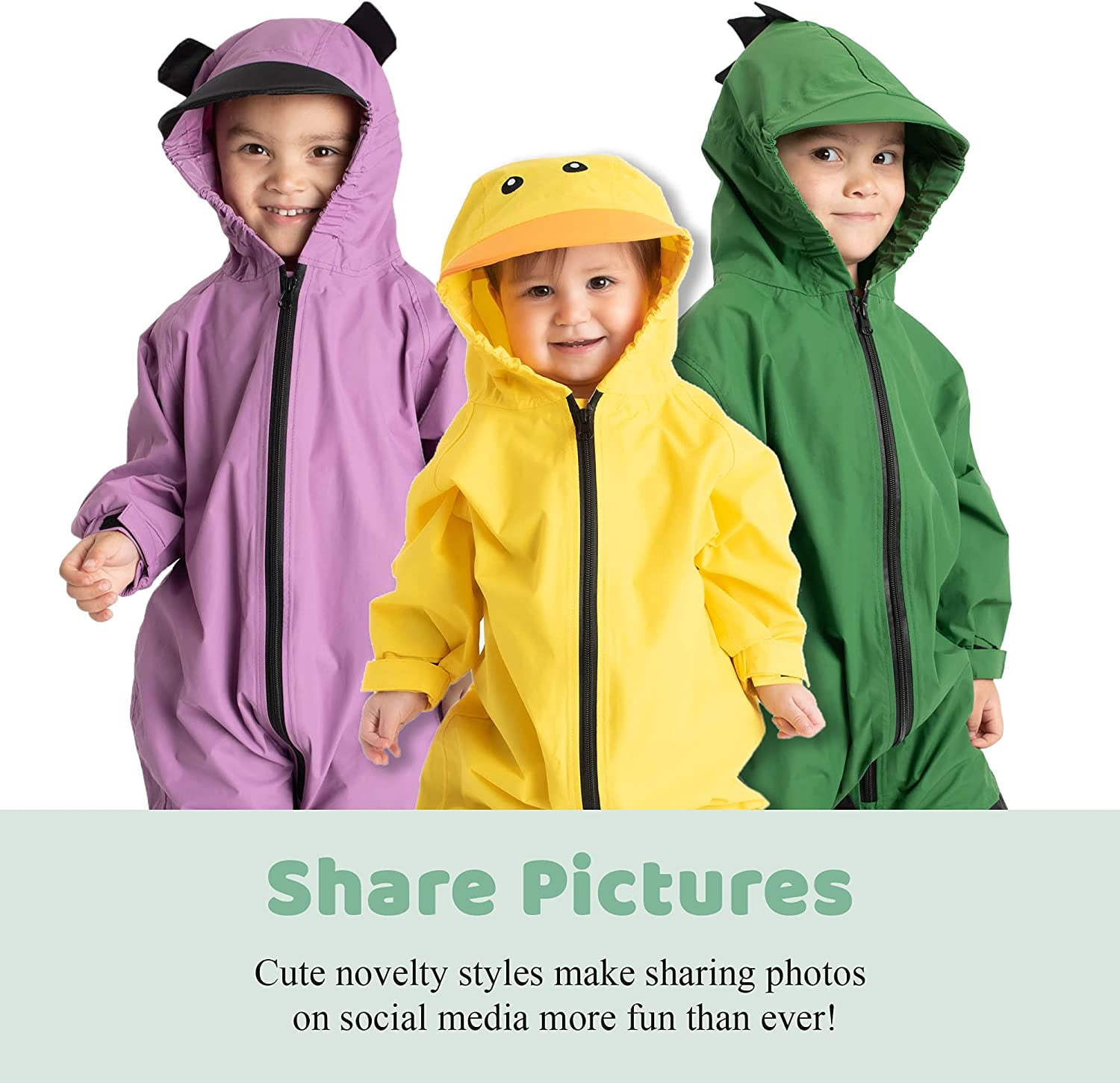 Cuddle Club One Piece Kids Rain Suit Waterproof Jacket Toddler Overalls, Purple Bear 18-24 Months