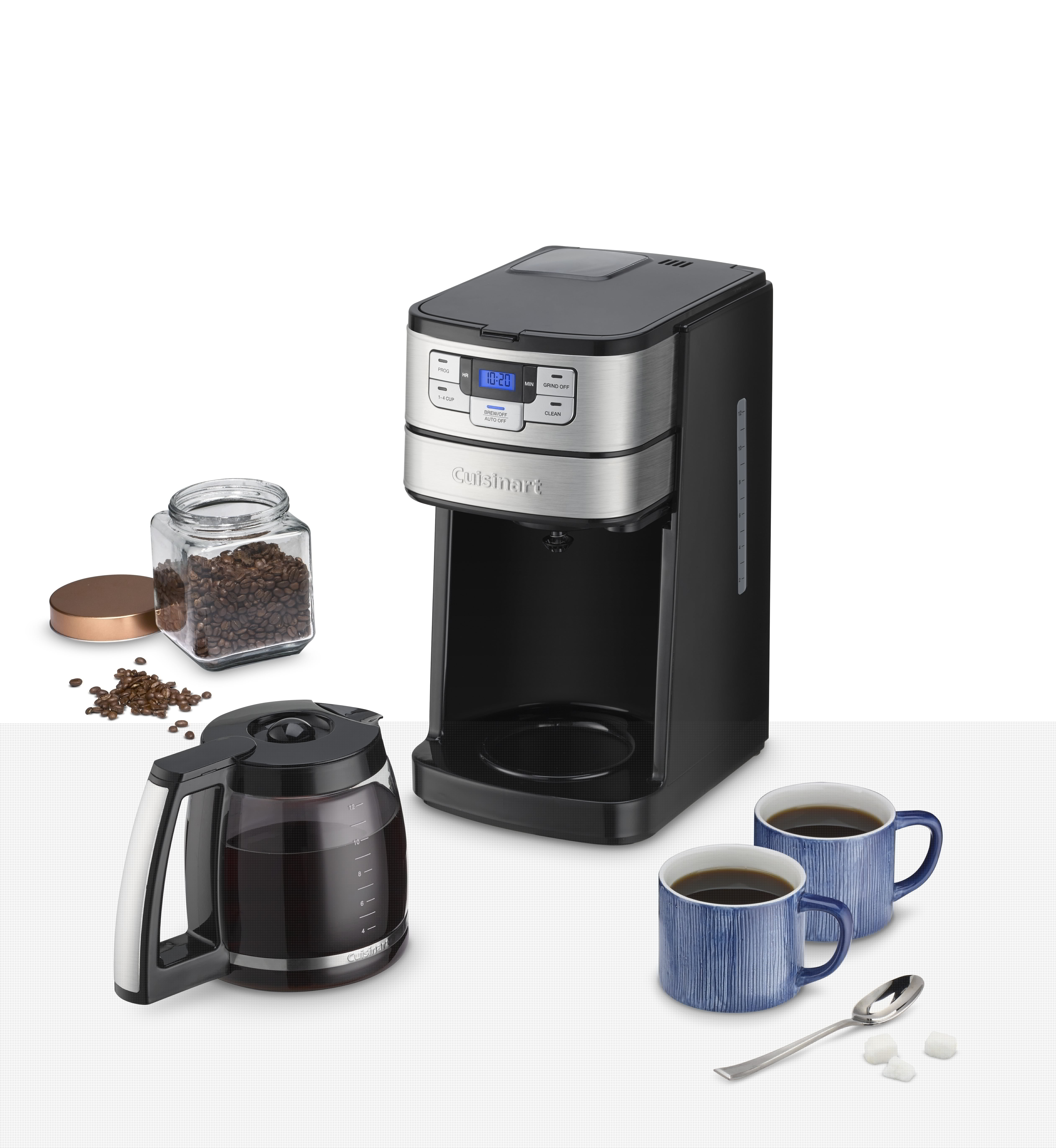 Making fresh-ground coffee at home is easy with the Cuisinart Automatic Grind and Brew 12-Cup Coffeemaker. Designed with a powerful blade grinder that automatically grinds beans just before brewing, it does all the work for you with programmable 24-hour brew start, adjustable auto-off, and 1-4 cup setting options. Preset to have a pot of hot, delicious coffee ready first thing in the morning. Don t want to wait for a full pot to brew. Use the Brew Pause feature to enjoy a cup without interrupting the brew cycle. Have pre-ground coffee. Use the grind-off option to brew it to perfection. Versatile and simple to use, the Automatic Grind and Brew spare you the trip to the coffee shop. Maximum convenience and fresh, full-bodied flavor assured.