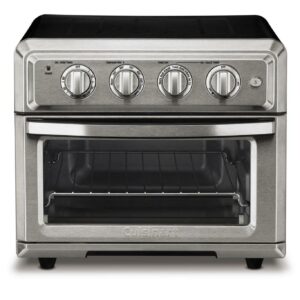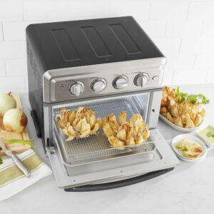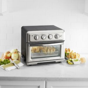 Introducing a healthier way to fry, and so much more! The new Cuisinart Oven Fryer is actually a premium full size toaster oven with a built-in air fryer. That means it not only bakes, broils, and toasts, it also lets you air fry right inside the oven. Best of all, a large 4-pound chicken requires only about a teaspoon of oil to fry! Air frying, which uses powerful ultra-hot air, is a healthier way to prepare delicious fried favorites, from wings to fritters to fries to shrimp. And since toaster ovens stay on the countertop, this fryer doesn’t have to move back and forth, from cupboard to counter. Enjoy the crunch without the calories and messy cleanup, with the Oven Fryer from Cuisinart