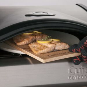 – Includes 12-inch pizza peel, 13-inch cordierite stone, warming tray, integrated smoker cup, and pizza making guide