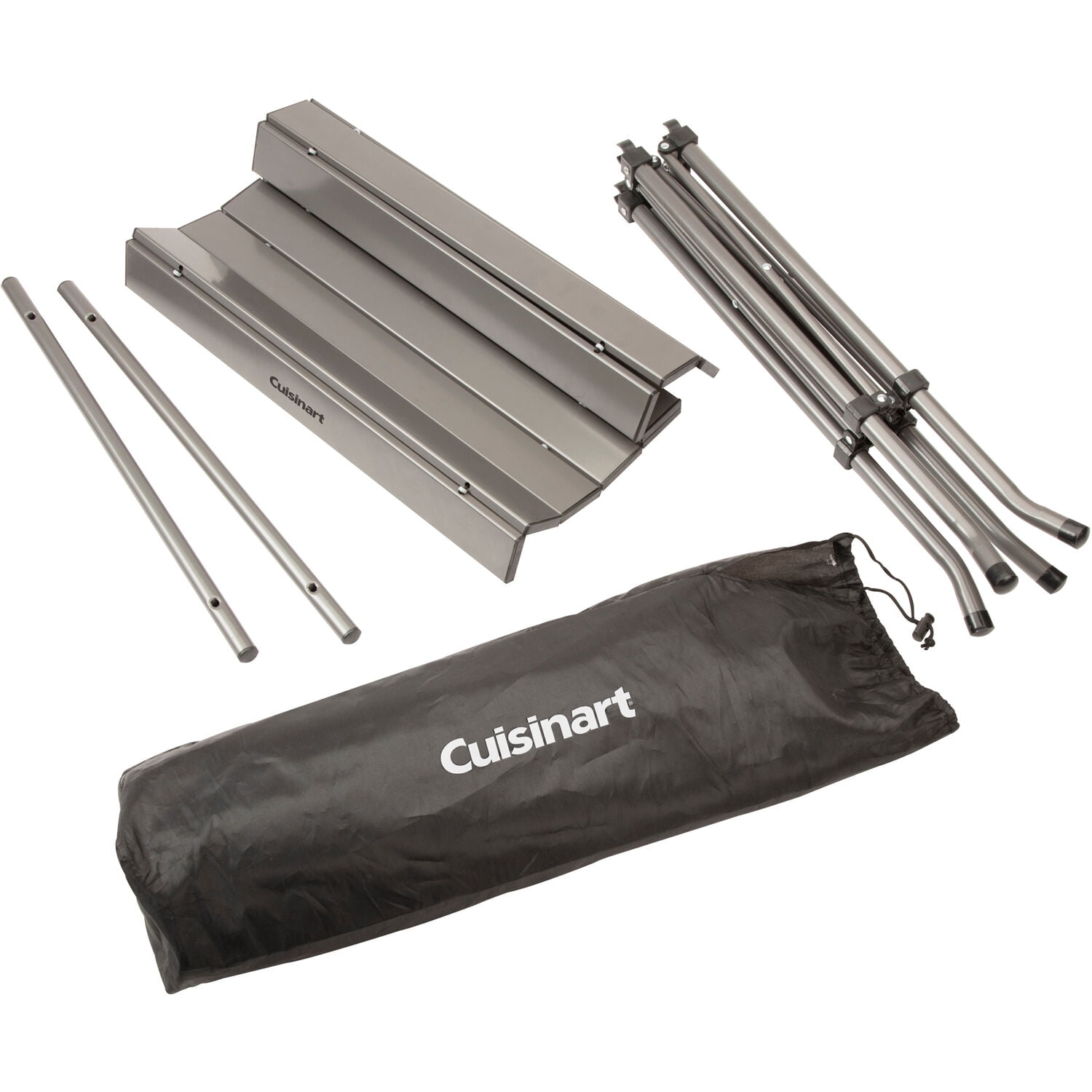 The Cuisinart Aluminum Folding Table is the perfect table for the beach, campsite, or tailgate! The compact design and included travel tote make the table ideal for on-the-go activities. The no-hardware assembly and 4 piece design allows the table to be set up in seconds. The 20″ x 20″ table surface is the perfect size for small portable grills and heaters, as well as camp stoves.