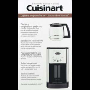 The Cuisinart Brew Central Coffee Maker is an introduction into an evolutionary new look in coffeemakers. This kitchen appliance makes a bold statement with a brushed metal finish and an elegant tech-industrial design that coordinates well with other appliances. This stainless steel coffee maker is programmable from start to finish so that a hot cup of coffee can be waiting when you need it most. It also has a variable heater plate for temperature control, which makes it an ideal coffeemaker for today’s demanding consumer. This Cuisinart 12-cup programmable coffee maker can even alert you when it’s time to decalcify, so the machine can be kept in good condition. It delivers quality, performance and convenience all wrapped up in new state-of-the-art packaging. The 12-cup carafe of the Cuisinart Brew Central Coffee Maker has an ergonomic handle that assures easy handling while in use.