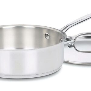Cuisinart Cookware Set – 10 Piece Chef’s ClassicRelease your inner chef with the 10 Piece Stainless Steel Chef’s Classic Cookware by Cuisinart! This high quality stainless steel cookware features a beautiful mirrored stainless finish that is wrapped around an aluminum base for quick and even heat distribution. The stainless steel is 18/10 ensuring a long lasting finish that will be on display in your kitchen for years. This cookware set is freezer, dishwasher, broiler and oven safe up to 550°. You can use wood, nylon and plastic utensils but metal utensils are not recommended for the stainless steel cookware. Cuisinart is so confident in their durable finish that they back the 10 piece stainless steel cookware with a lifetime warranty.Cuisinart 10 Piece Stainless Steel Cookware Set includes: 1-1/2 Qt. Cuisinart Saucepan w/Cover 3 Qt. Cuisinart Saucepan w/Cover 3-1/2 Qt. Cuisinart Sauté pan w/Helper Handle and Cover 8″ Cuisinart Open Skillet 10″ Cuisinart Open Skillet 8 Qt. Cuisinart Stockpot w/CoverCuisinart Cookware Product Features: Cuisinart Cookware Set Chef’s Choice Stainless:18/10 mirror finish. Classic looks, professional performance.Cuisinart Cookware Set has Unsurpassed Heat Distribution:Aluminum encapsulated base heats quickly and spreads heat evenly. Eliminates hot spots.The Cuisinart Cookware Set has Stainless Steel for Professional Results: 18/10 stainless steel cooking surface does not discolor, react with food or alter flavors. Great for classic cooking techniques like slow simmers, rolling boils and reduction of liquids.Cool Grip Handle: Solid stainless steel riveted handle stays cool on the stove top. A helper handle provides extra support and balance when lifting and pouring.Cuisinart Cookware for Drip-Free Pouring: Rim is tapered for drip-free pouring.Flavor Lock Lid: Tight fitting cover seals in moisture and nutrients for healthier, more flavorful results, every time you cook.Cuisinart Cookware is Dishwasher Safe: Premium 18/10 stainless steel easily cleans to original brilliant finish.Compatible with induction, gas, electric, glass, and halogen cooktops Oven safe to 550°F Constructed to Last: Limited Lifetime Warranty.Looking For Other Cuisinart Cookware Sets or Products Click Here