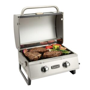 – COOKING POWER: The grill features two stainless steel burners totaling 20,000 BTUs.