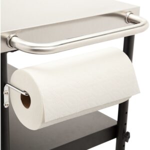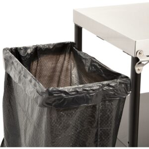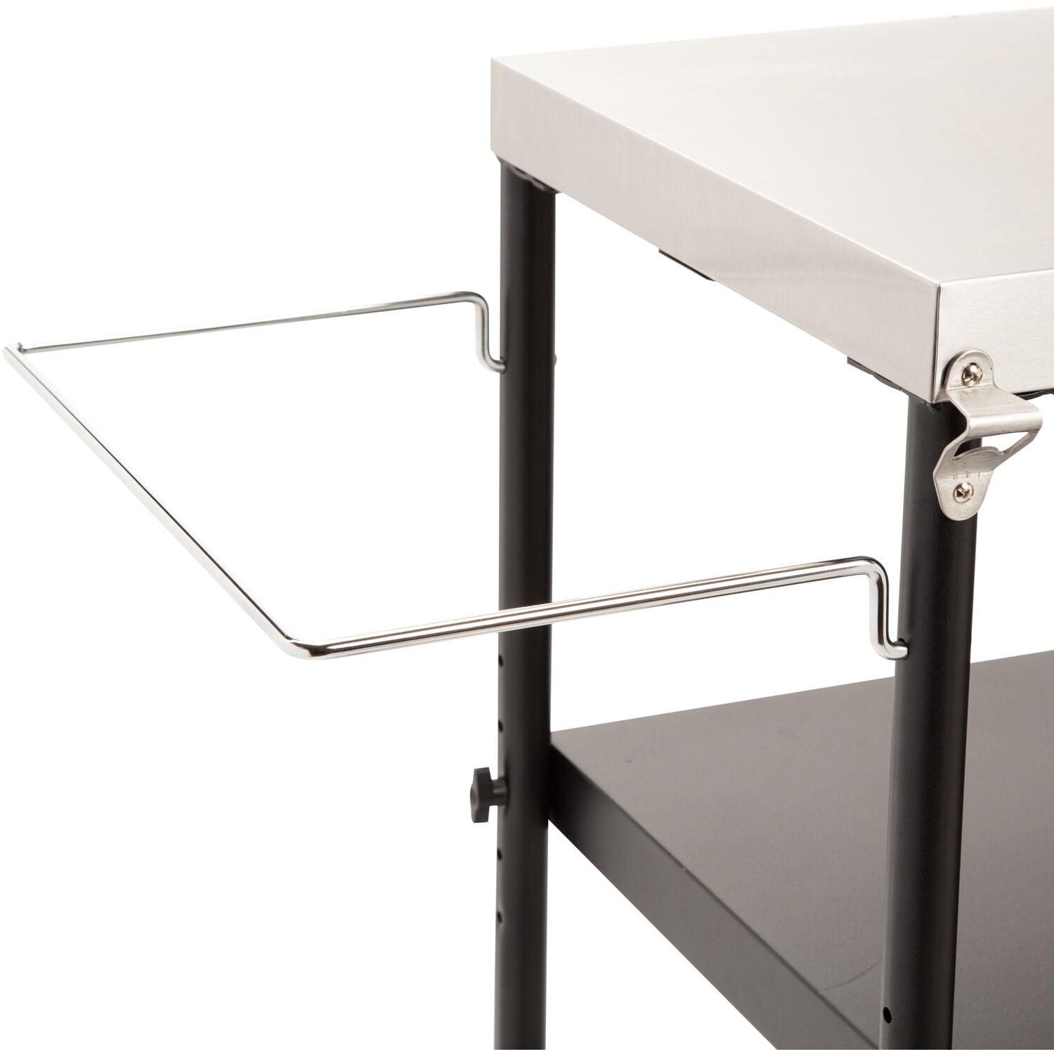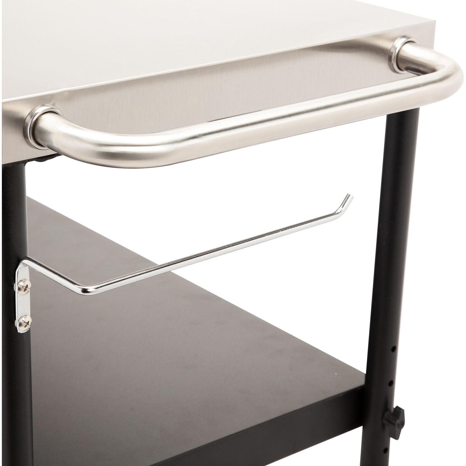 Expand your outdoor grill prep space with the Cuisinart outdoor BBQ prep cart! Cut down on the trips to and from the kitchen by keeping all your BBQ essentials out by your grill or smoker. The prep table features a spacious 36″ x 18″ stainless steel work surface that offers plenty of space for prepping meats, fish, chicken, veggies, and so much more. Easily remove food scraps from the work surface by brushing them directly into the garbage bag holder, which can accommodate up to 30 gallon size trash bags. The prep cart also comes equipped with a paper towel holder that can fit up to a jumbo roll of paper towels. The height adjustable shelf sits between 18-24″ inches off the ground, allowing you to position exactly where you need it. The shelf is perfect for holding plates, utensils, grill fuel like charcoal and wood pellets, as well as any other BBQ essentials you need by your grill or smoker. Keep up to 6 BBQ tools within quick reach by utilizing the tool hooks.
