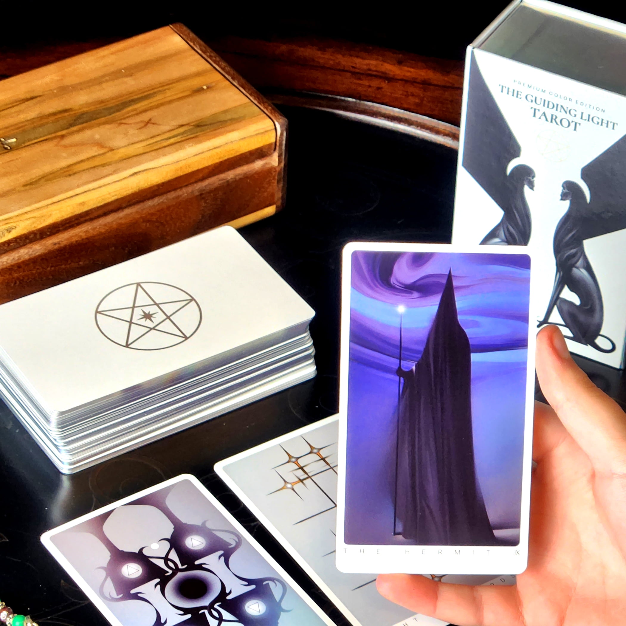 𝗘𝘅𝗽𝗹𝗼𝗿𝗲 𝗬𝗼𝘂𝗿 𝗜𝗻𝗻𝗲𝗿 𝗪𝗼𝗿𝗹𝗱: Da Brigh’s guiding light tarot cards ensure you explore the depths of your mind and soul. Inspired by the interplay of light and shadows, these 78 cards reveal the potent imagination of artist Victoria Iva. 𝗨𝗻𝗶𝗾𝘂𝗲 𝗔𝗿𝘁𝗶𝘀𝘁𝗶𝗰 𝗗𝗲𝘀𝗶𝗴𝗻: Our fortune telling cards interpret themes of inner purity, emotional struggle, spiritual strength, and soulful growth through their vivid colors and otherworldly representations. The unique design brings a fresh perspective to every reading. 𝗛𝗶𝗴𝗵-𝗤𝘂𝗮𝗹𝗶𝘁𝘆 𝗖𝗿𝗮𝗳𝘁𝘀𝗺𝗮𝗻𝘀𝗵𝗶𝗽: These tarot cards with guidebooks are exquisitely printed on thick, luxury art paper, ensuring a stunning finish with curved edges and a silver foil border. The rich colors and sharper imaging make each card visually captivating. 𝗖𝗹𝗲𝗮𝗿 𝗧𝘆𝗽𝗲𝗳𝗮𝗰𝗲 & 𝗘𝗮𝘀𝘆 𝗦𝗵𝘂𝗳𝗳𝗹𝗲: Our tarot cards have a simple black typeface at the bottom, clearly displaying each card’s name. These cards are also convenient in size, which makes them easy to shuffle and handle during readings. 𝗖𝗼𝗺𝗽𝗹𝗲𝘁𝗲 𝗣𝗮𝗰𝗸𝗮𝗴𝗲: This tarot deck includes a comprehensive guidebook with card meanings, all housed in a Da Brigh Keepsake hardcover box with a magnetic latch. The assembled dimensions are 4.75 x 2.75 x 2.00 inches, perfect for storage and portability.