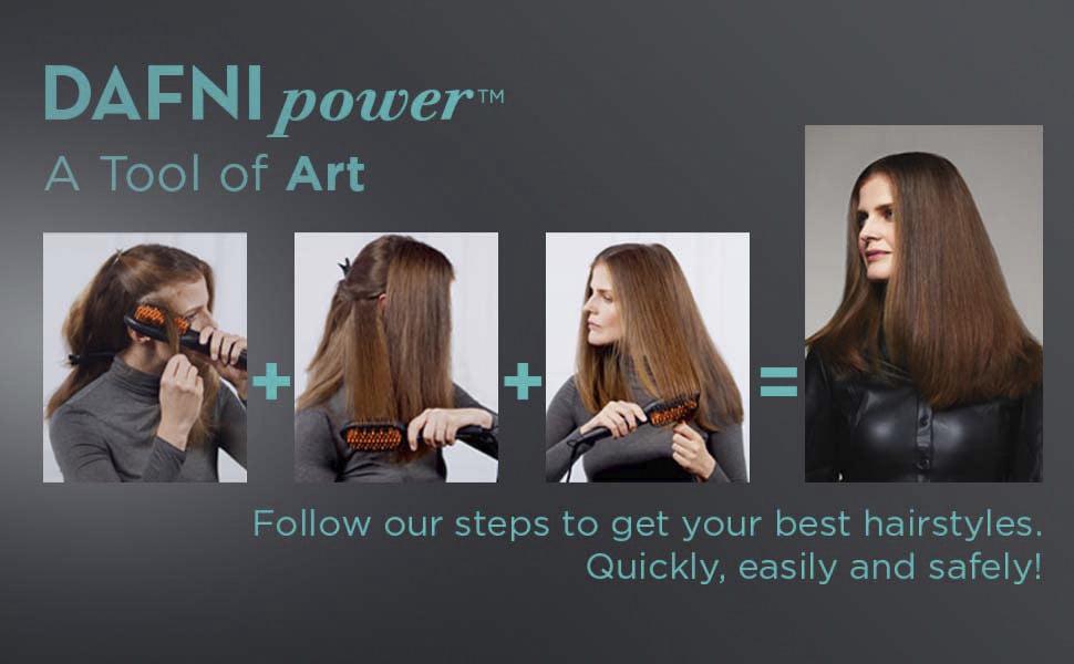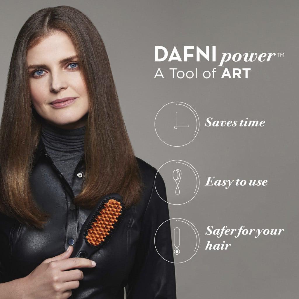 If you can brush your hair, you can DAFNI The original straightening brush that broke the Internet has been reimagined. Now we have a version that promises extra control for superb results. More Disruptive and More Innovative, DAFNI Power is the next-level hair straightening brush you never knew you needed. Our technology just got better smooth, shiny, and naturally vibrant hair is a brush stroke away. At DAFNI, we live by our values and have obsessed over every detail, so you don t need to. Our aim is to make straightening your hair easier, faster, and safer, and we want you to feel like you have been given the secret sauce to having your best hair every day! DAFNI x Conair brings you superior knowledge and the latest technology, which results in strong and shiny hair. Our tools heat to an optimal 365°F to maintain your hair’s integrity. And DAFNI Power is simple to use. Effortless styles can be achieved in minutes. Love your vibrant and healthy hair every day with DAFNI Power.