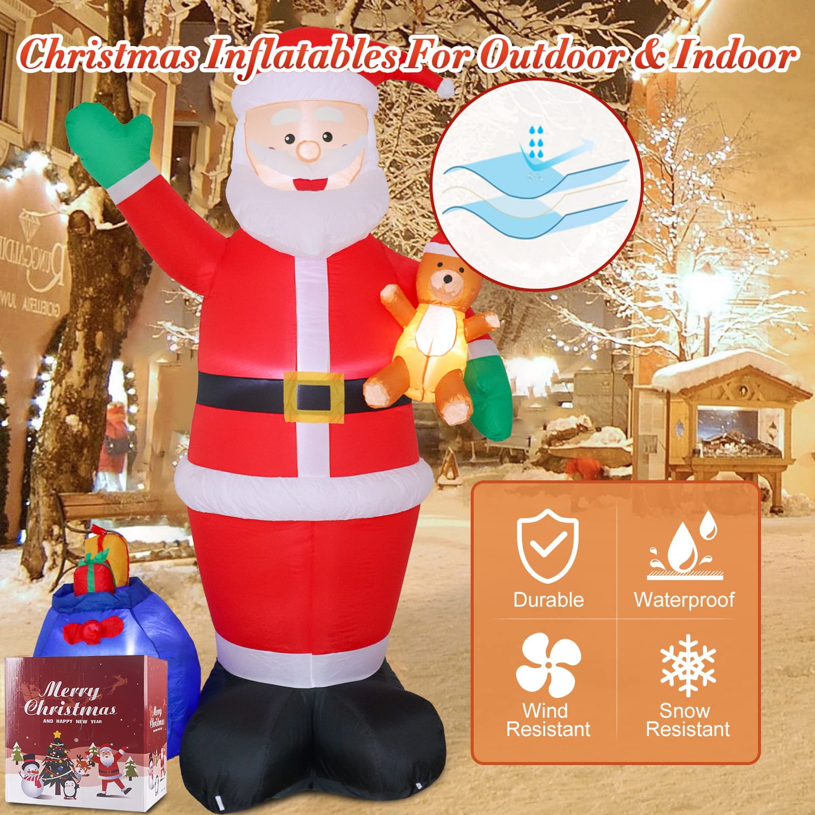 DAKIMOE 7 ft Tall Christmas Inflatable Santa Claus with Gift Bag and Bear Lights Outdoor Indoor Holiday Party Decorations Blow up Lawn Inflatables for Xmas Décor Home Family Decor Yard Patio