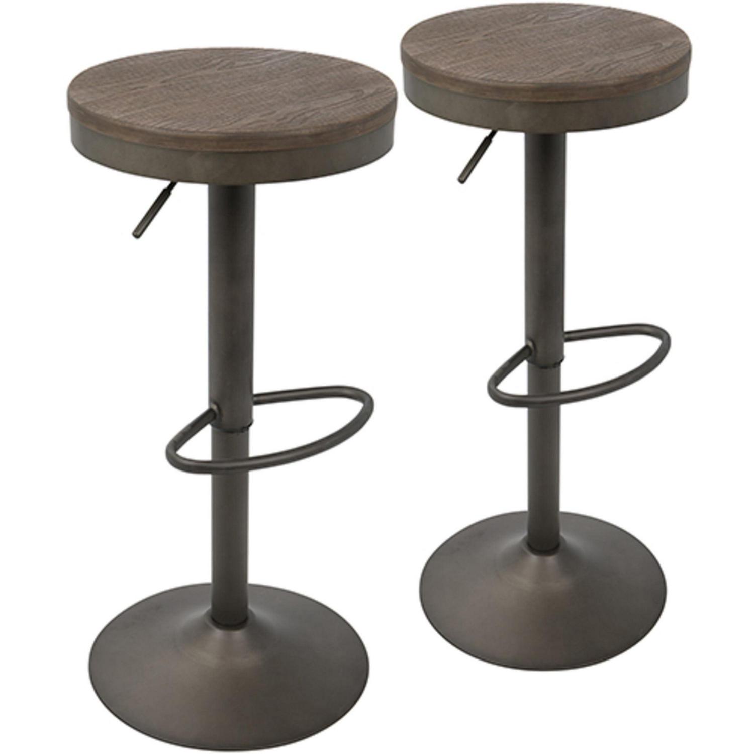 Dakota Industrial Adjustable Barstool in Antique and Brown by LumiSource – Set of 2