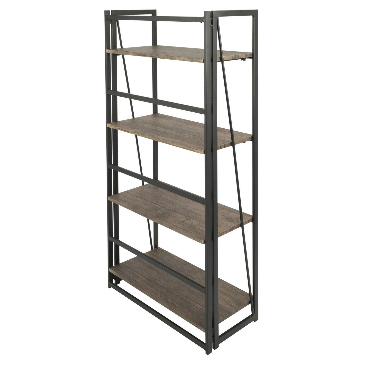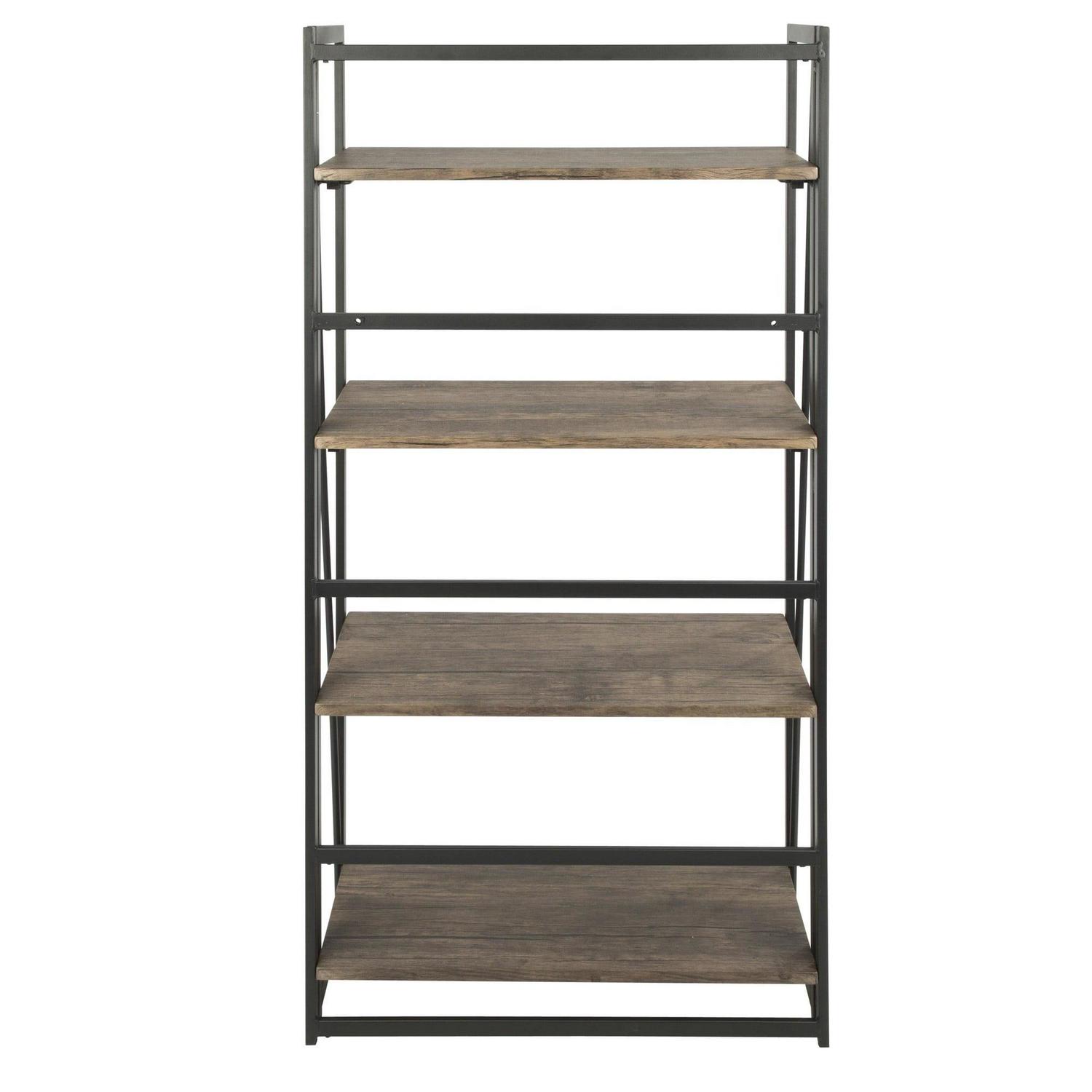 Dakota Industrial Bookcase in Black Metal and Wood by LumiSource