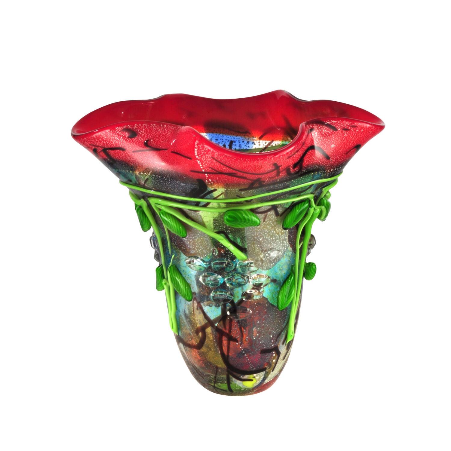 Dale Tiffany Favrile Henton Handcrafted Art Glass VaseLength: 14 INLength of Item: 14 inMaterial: Accent Color 1: Multi-coloredLicensed By: Dale TiffanyrMaterial: Primary: CrystalItem Weight U/M: lbsWidth of Item: 14 inProduct Type: GiftSold By Unit: EachGift Type: Art GlassHeight: 14 inCustomized items can not be returned