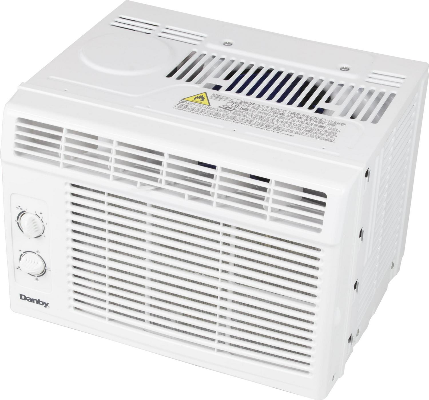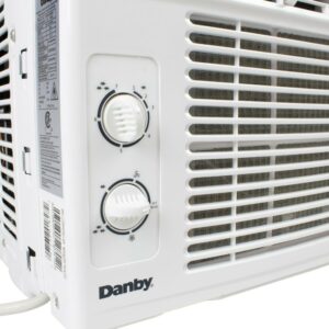 Cool down with Danby s 5,000 BTU window air conditioner, perfect for spaces up to 150 square feet. Use this unit anywhere in your home with the proper window, such as your bedroom, home office, kitchen, or basement or use it at the cottage to help make those hot summer days more comfortable. The easy-to-use mechanical rotary controls offer two cool speeds and two fan speeds. Plus, this AC comes with two-way air direction. In addition, this AC unit uses R32 refrigerant that reduces global warming potential by 3x compared to R410a refrigerant. This model also comes with a reusable, washable air filter that makes maintenance a breeze.