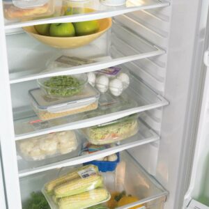 – 4 full width and 1.5-inch wide tempered glass shelves for maximum storage versatility