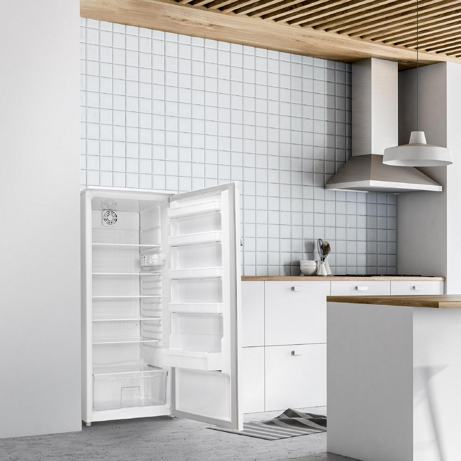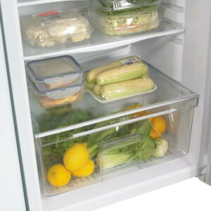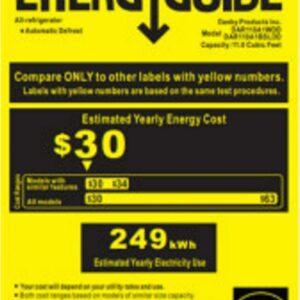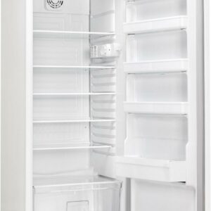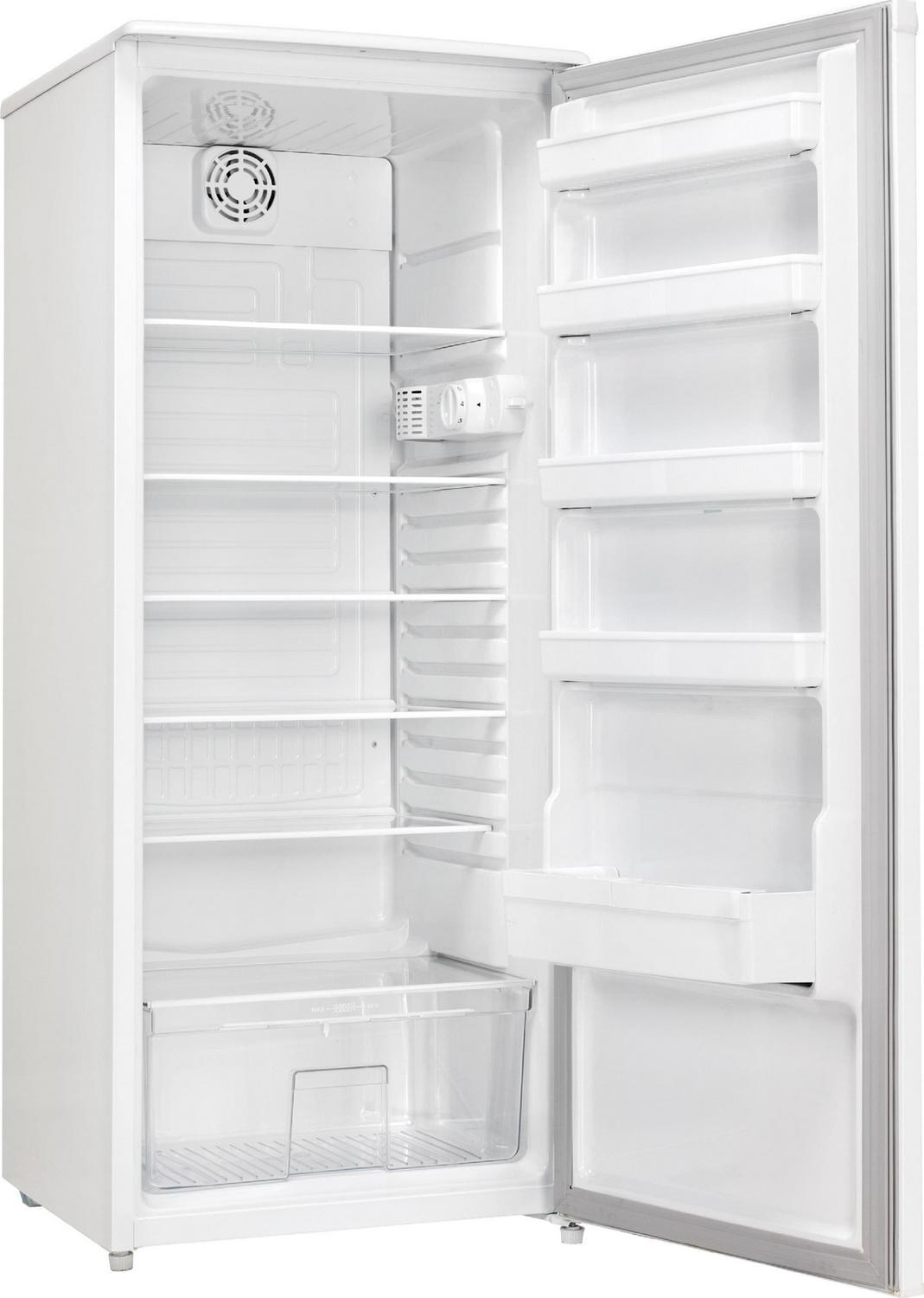 Enjoy your chilled beverages where they’re needed most with the Danby 11 Cubic Feet Spotless Compact Apartment Refrigerator. This handy compact fridge is perfect for an office, garage, dorm room, basement, or any other room you need to keep beverages and food cold and within reach. It has 11 cubic-foot capacity and is Evergy Star rated and compliant. It features a stylish and clean white color along with automatic defrost, two tempered glass shelves, a CanStor beverage dispenser, vegetable crisper and cover, and mechanical thermostat. It also features an interior light for grabbing a late-night snack or drink. This premium refrigerator measures 24 inches wide, 26 inches long, 58.75 inches high, and weighs 142.20 pounds.
