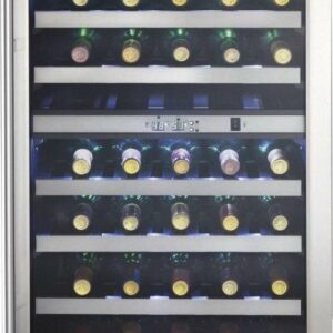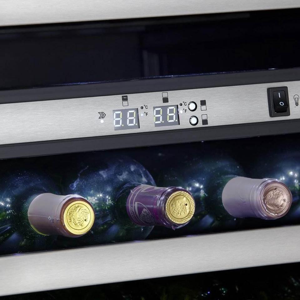 - Two distinct separately regulated temperature zones, one for red wine and one for white wine