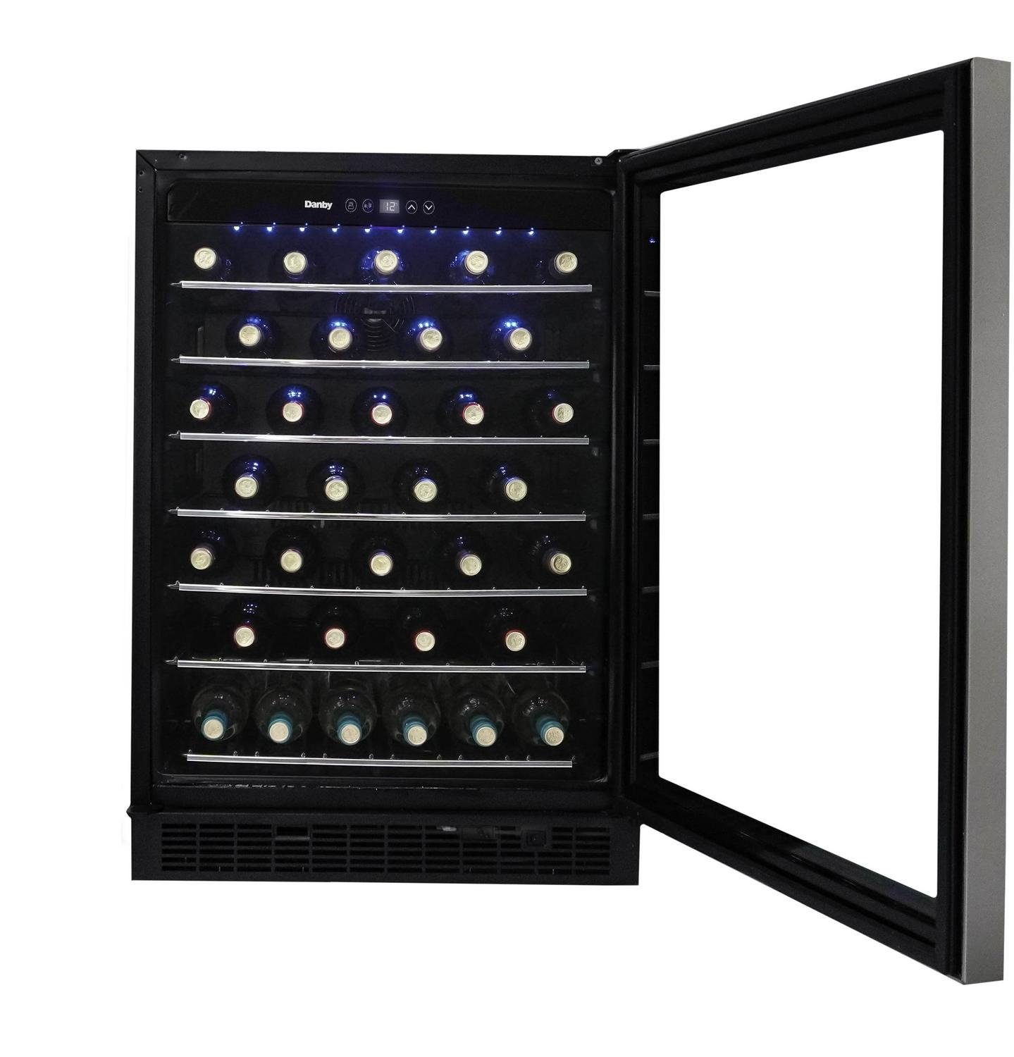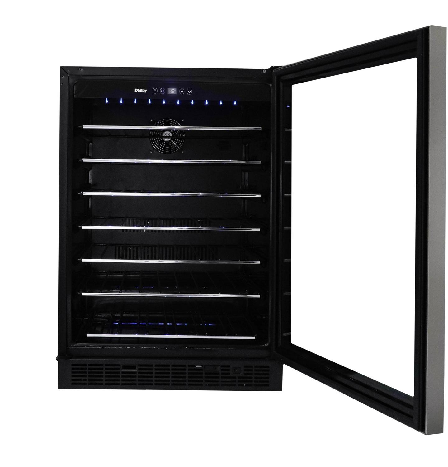Danby DWC057A1BSS 5.7 Cu. ft. Built-In Beverage Center, Holds 60 Bottles, Single Zone Under Counter Wine Fridge in Stainless Steel