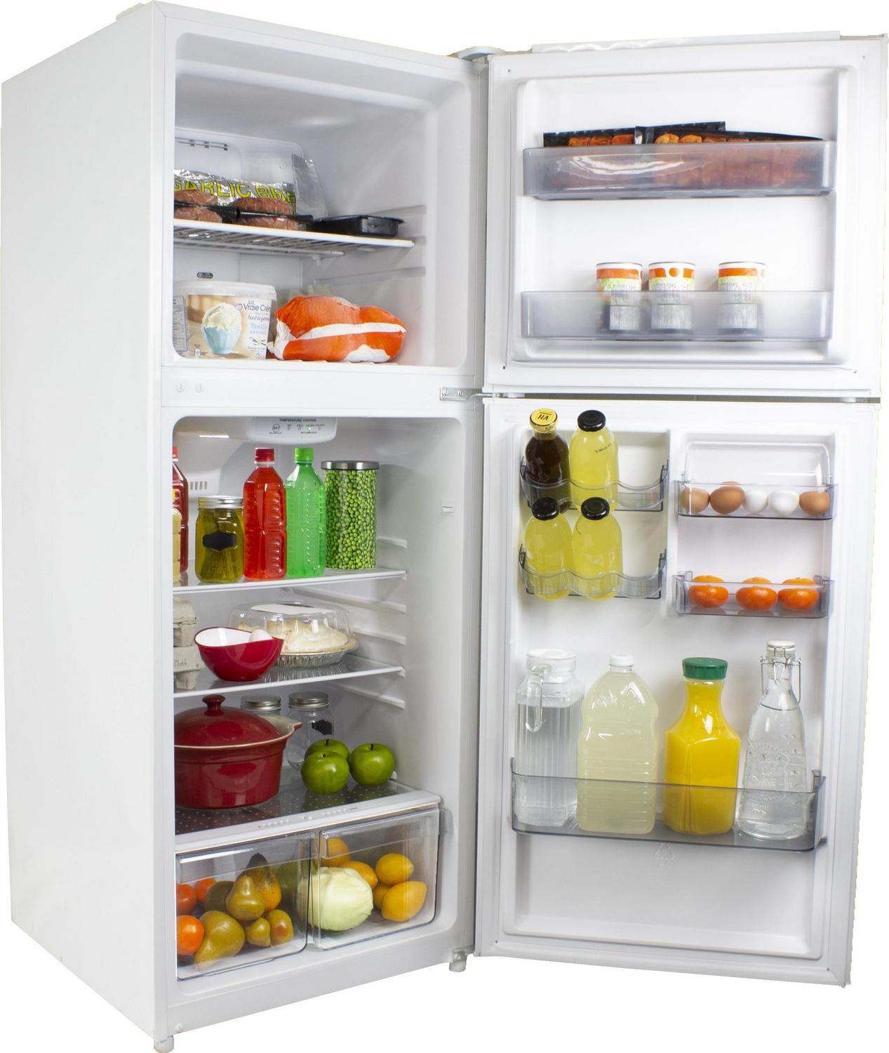 No kitchen is complete without a fridge. Keep your food safe, moist, and fresh in Danby’s Large Capacity Apartment Refrigerator and never let your goodies go bad again. Pile in fruits and veggies, meats, cheeses, and much more in this 10.1 cubic foot ice box. Nothing tastes as good as fresh does. Equipped with both freezer and fridge sections, the food storage limits are endless. Keep frozen treats in the upper section and use the 2 freezer door shelves to store ice cream, snacks, and other goodies you want easy-access to. Inside the main compartment, you’ll find 2.5 adjustable shelves, 5 door shelves, and 2 clear vegetable crisper drawers. The interior layout makes it effortless to maintain a neat and organized cooler. Specially designed, the best part about the Danby 10.1 Cubic Foot Apartment-Size Fridge is it’s built to be maintenance-free. Never worry about freezer burn thanks to the automatic defrost that prevents ice build up. Controlled airflow gives your groceries a longer shelf-life without loss of storage capacity. Spoil your food and yourself with Danby’s Apartment Refrigerator.