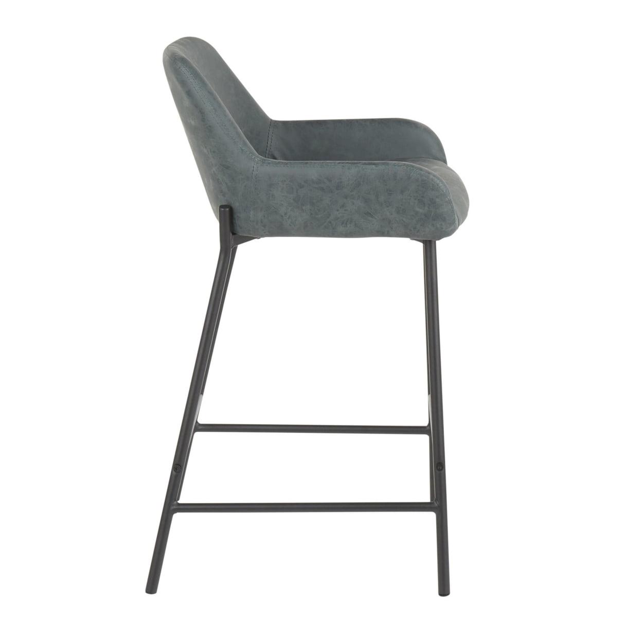 Add stylish and comfortable seating to your kitchen or counter area with the industrial charm of the Daniella Counter Stool by LumiSource. Featuring a sleek faux leather upholstery, padded seat, and backrest and a unique black metal frame. The Daniella is available in a variety of upholstery styling. Fixed counter height. Faux leather upholstery. Padded seat and backrest. Includes two counter stools. Priced and Sold in Pairs: Indoor use only, 250 lbs. weight limit (each), Assembly required.