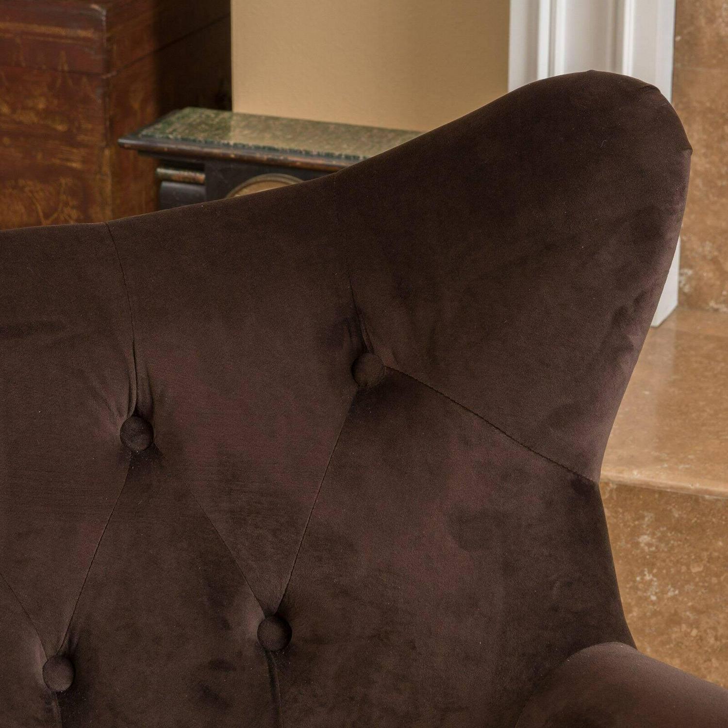 - Tufted cotton and velvet upholstery